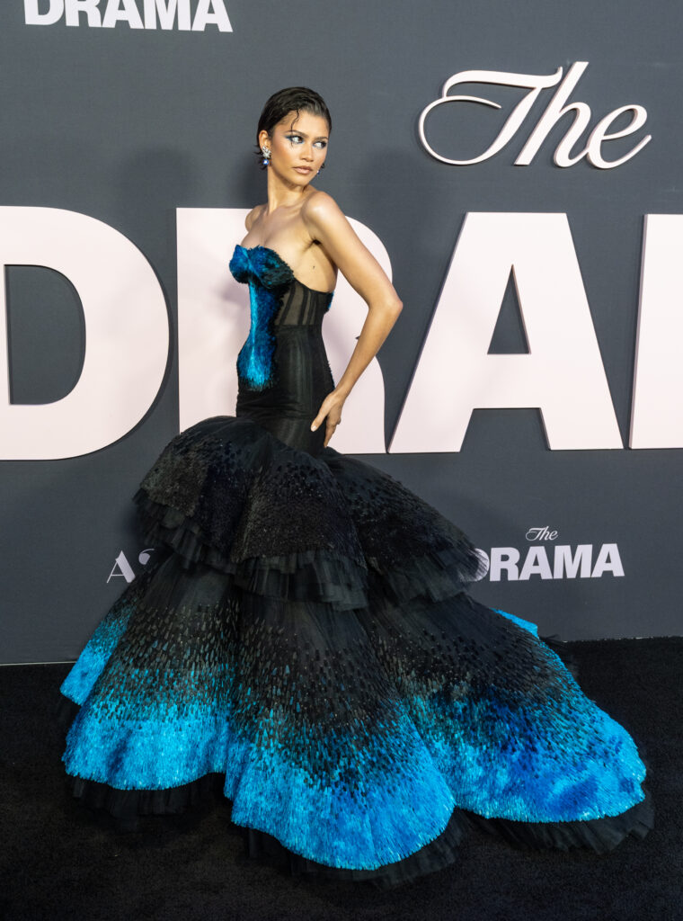 Dobitnica nagrade Emmy i modna ikona, Zendaya, završila je svoju seriju pažljivo osmišljenih modnih izdanja tokom globalne promotivne turneje za film The Drama. Za premijeru u Njujorku, u bioskopu Regal Union Square, odabrala je „nešto plavo“, pojavivši se u kreaciji modne kuće Schiaparelli, uz nakit Tiffany & Co.