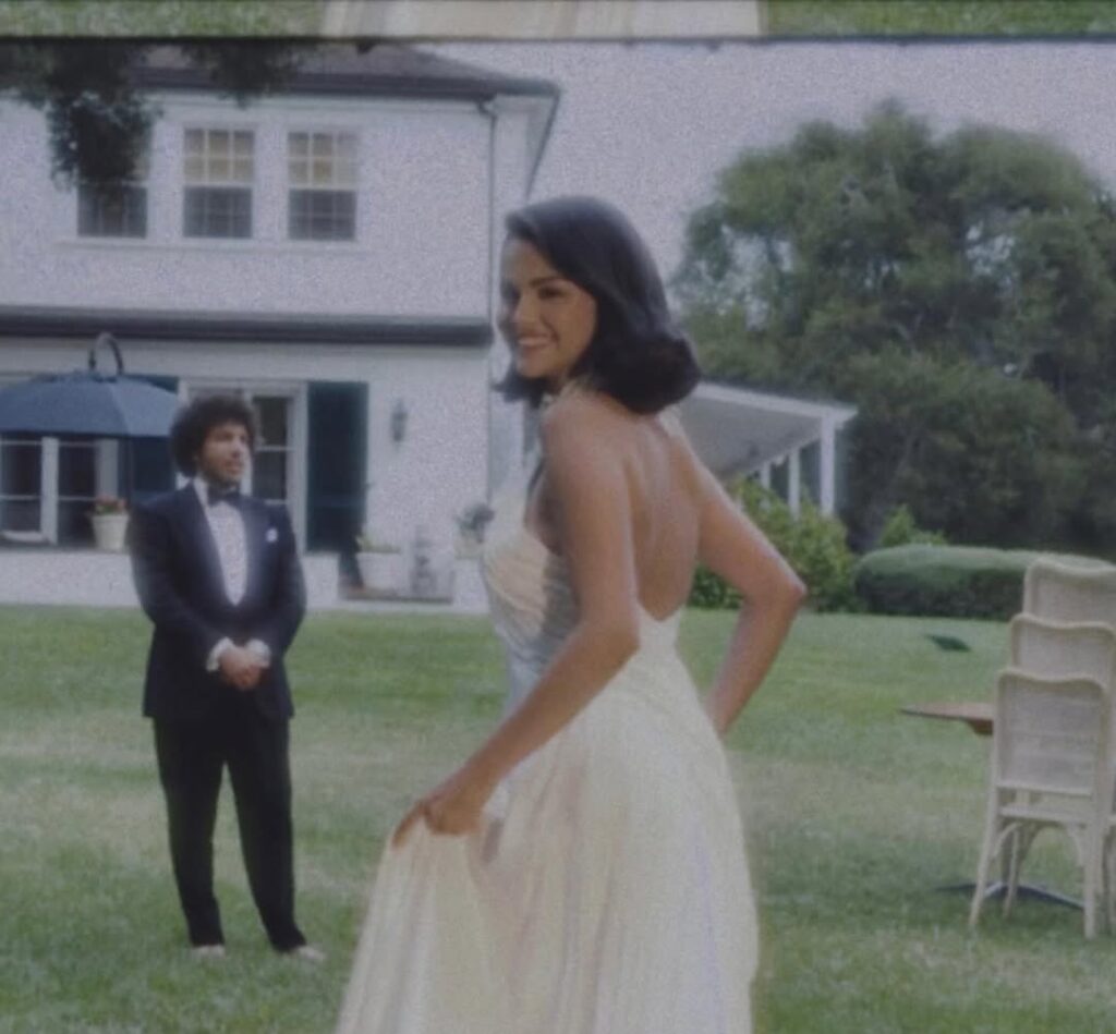 Haljina je inspirisana klasičnim stilom Selene Gomez, koji često vuče korene iz glamura zlatnog Holivuda, sa romantičnim izrezima, aplikacijama u obliku ružica i večnim siluetama.