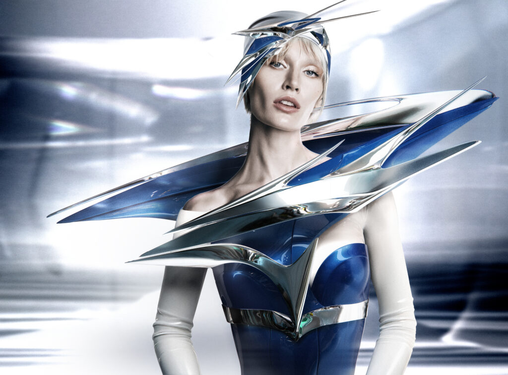 In this shoot, fashion transcends the material, transforming into visual sculpture. The deliberately overt use of 3D graphics becomes not merely a tool, but an artistic gesture—an accent on artifice, on the blurred boundaries between reality, machinery and simulation.