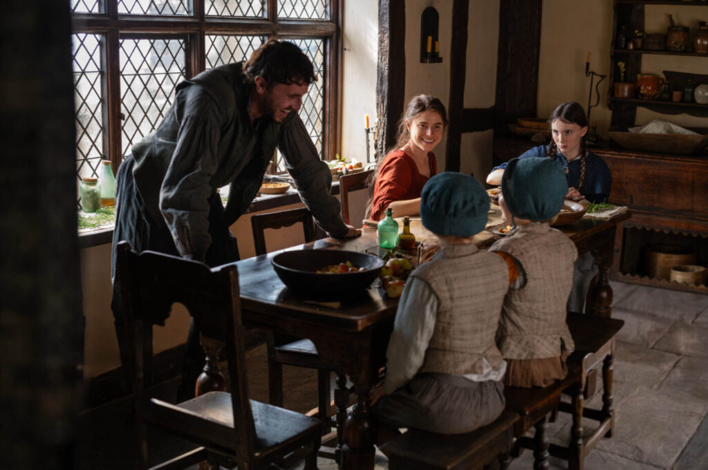 Iako je Hamnet, adaptacija istoimenog romana Maggie O’Farrell iz 2020, prvenstveno delo fikcije, likovi su zasnovani na stvarnim članovima Shakespeareove porodice: samom piscu (Paul Mescal), njegovoj supruzi Agnes Hathaway (Jessie Buckley) i njihovoj deci Susanni (Bodhi Rae Breathnach), Judith (Olivia Lynes) i Hamnetu (Jacobi Jupe).