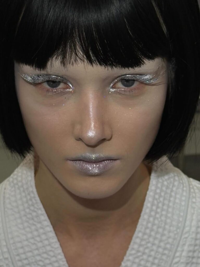 Trend „butter skin“ evoluirao je u „cosmic skin“ – kožu koja reflektuje svetlost i deluje gotovo holografski. Na reviji Sinead Gorey u Londonu, naglasak je bio na prirodnom sjaju koji podseća na svetlost reflektora. Cilj je postizanje blistave, zdrave kože koja izgleda kao da svetli iznutra, uz pomoć laganih tečnih highlightera i balzama.