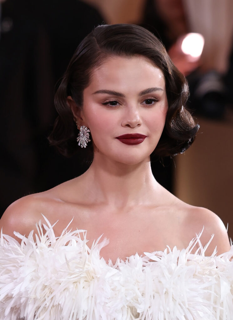 Kada se boja ipak pojavila, bila je predstavljena na nov, neočekivan način. Selena Gomez, zvezda serije Only Murders in the Building, pojavila se na crvenom tepihu sa dubokim mat burgundi karminom, u interpretaciji šminkera Hung Vannga, koji je namerno izbegavao svetlije crvene tonove.