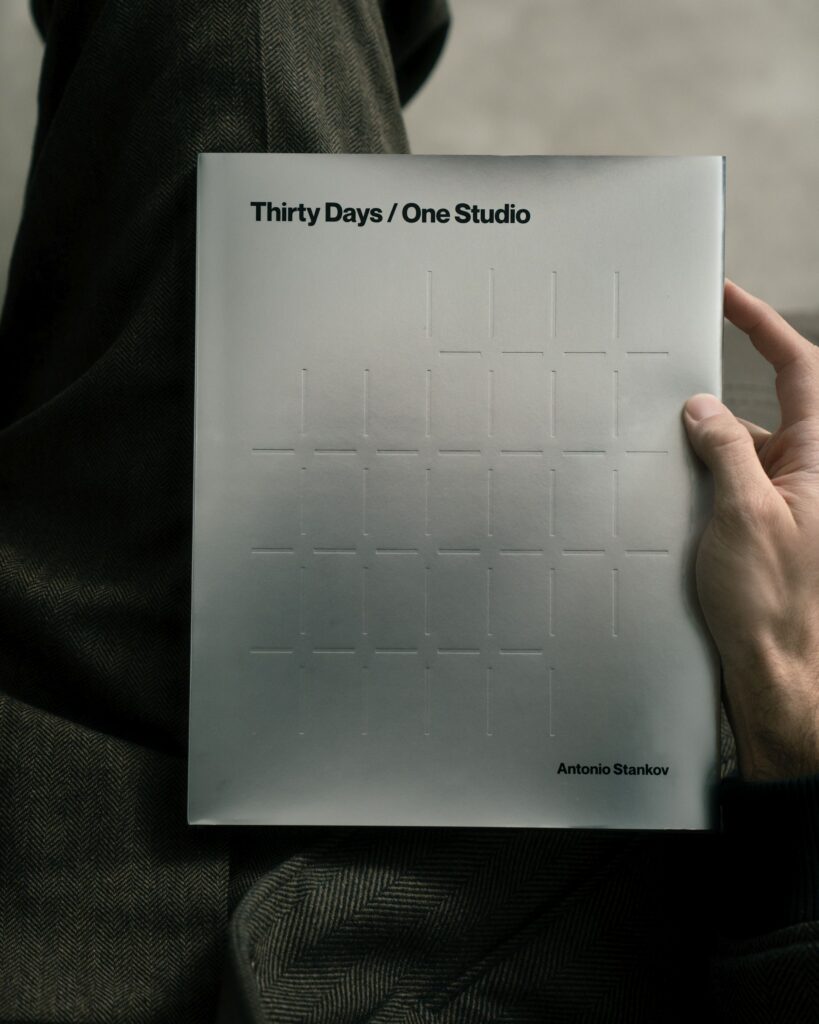 The monograph “30 Days, 1 Studio” is available as a limited edition print. Information about availability and orders is shared through Antonio Stankov’s official artistic channels and his official website.