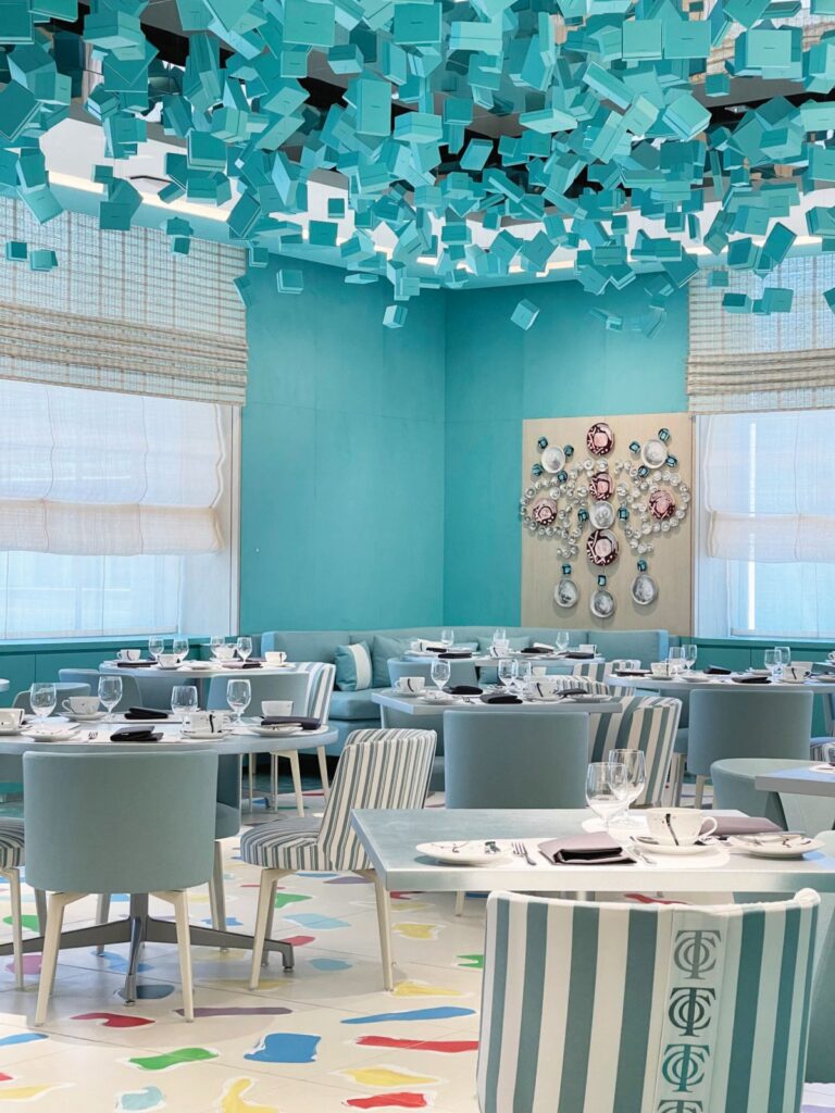 Kada je Tiffany i kompanija otvorila svoju redizajniranu i proširenu vodeću prodavnicu na Petoj aveniji u Njujorku 2023. godine, kupce nije privukao samo spektakularni nakit koji je bio izložen – koji je uključivao jedinstvene kreacije za otvaranje i novi dizajn legendarnog Tiffany dijamanta od 128,54 karata. Prošireni Blue Box Cafe na šestom spratu izazvao je isto toliko, ako ne i više, interesovanja i objava na društvenim mrežama.