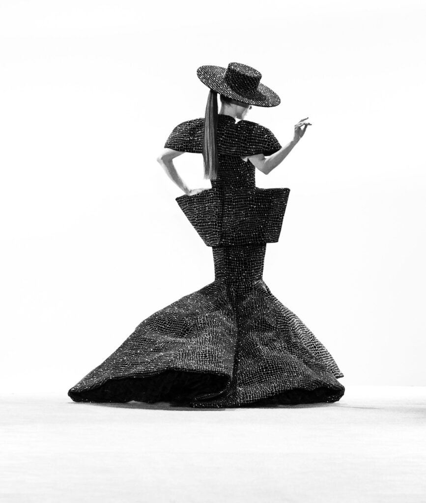 Kolekcija koja je potvrdila Sirianov povratak grandioznoj silueti. Look koji je nosila Coco Rocha kombinovao je skulpturalni volumen i pokret, sa konstrukcijom koja istovremeno deluje strogo i fluidno — njegov prepoznatljivi spoj drame i elegancije.