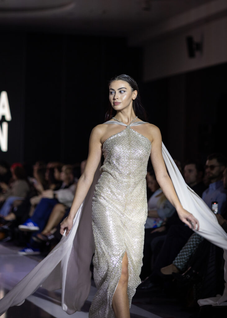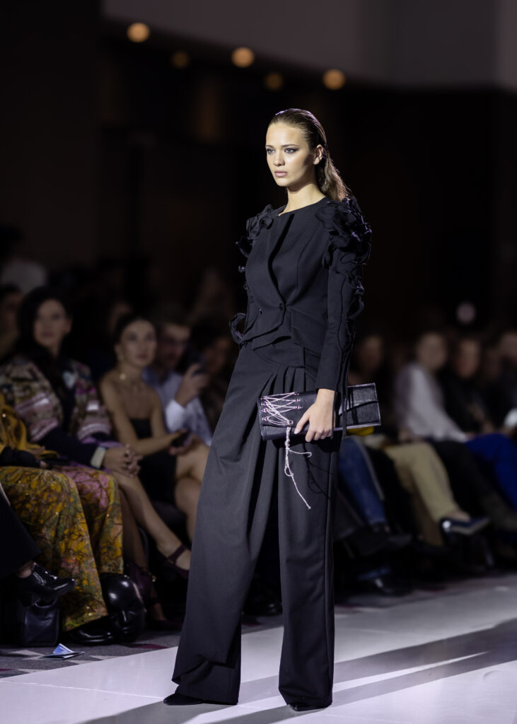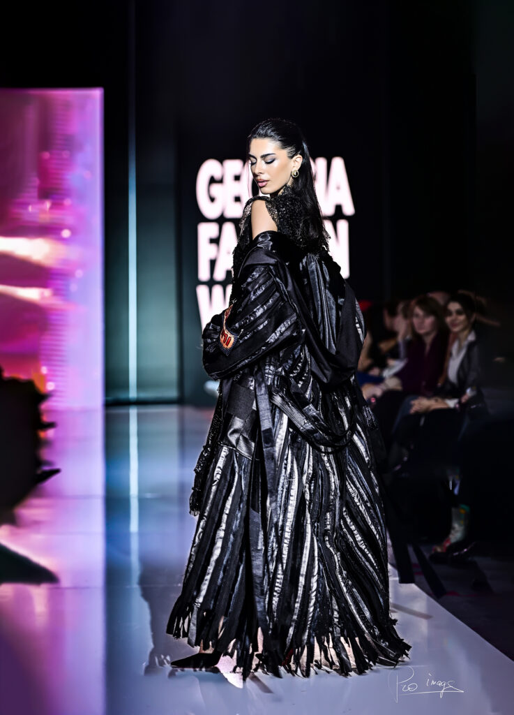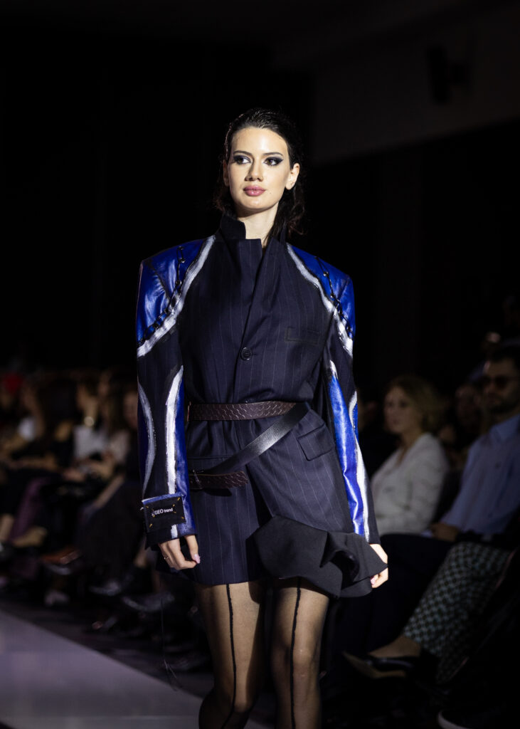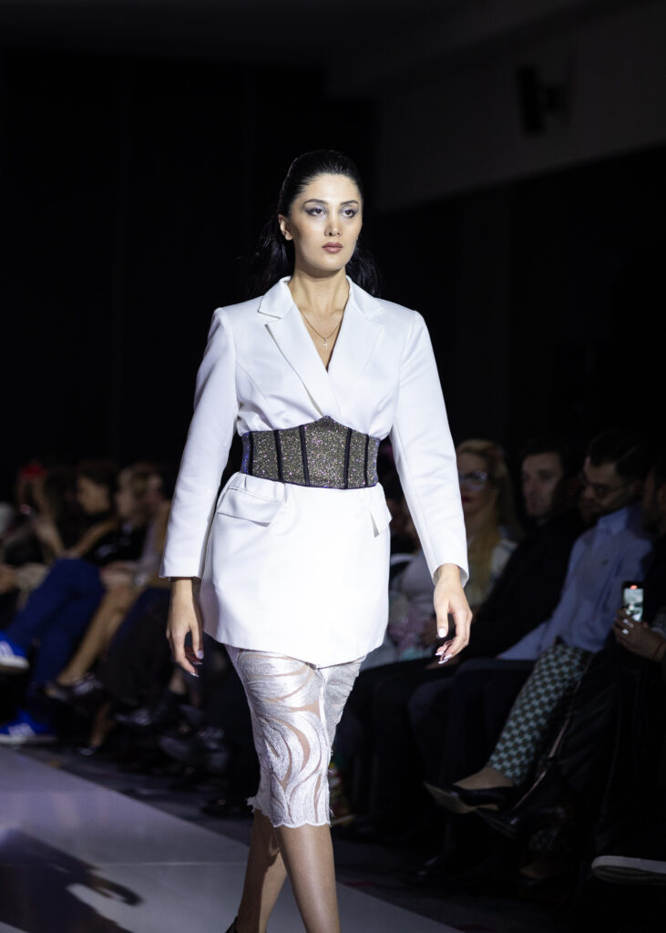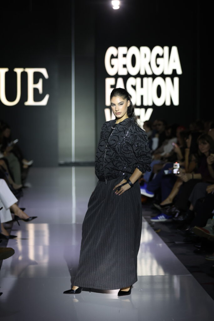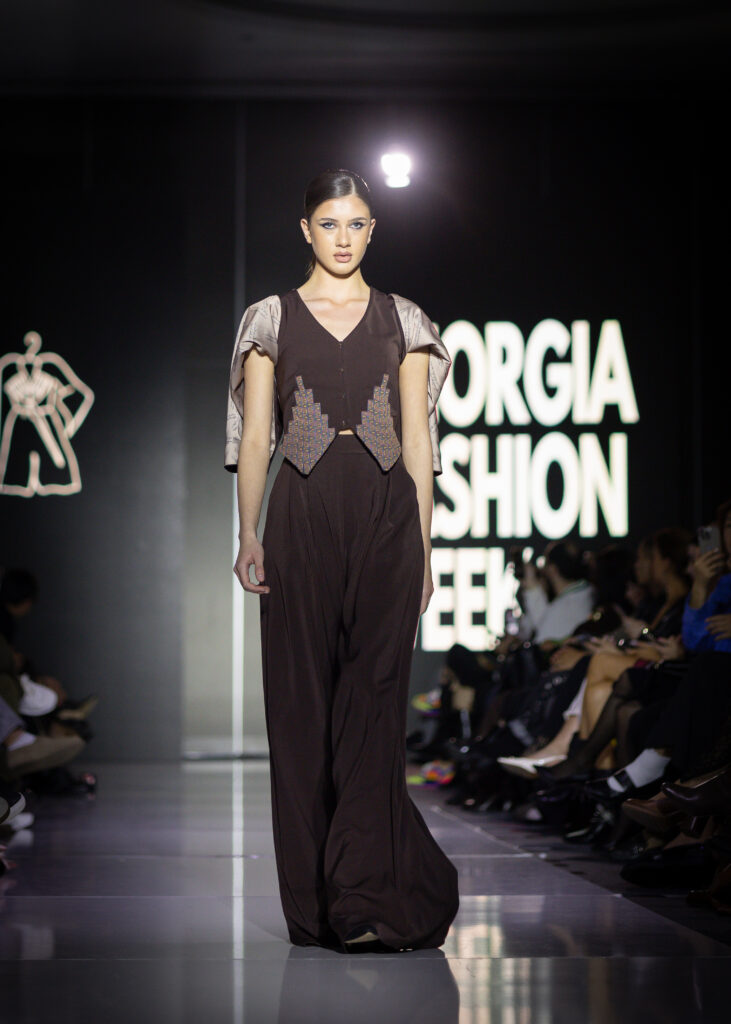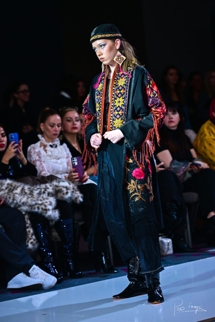 A young Georgian brand, –NEW SAUKUNE– presented a clothing collection created with ethno-inspired motifs. What particularly stood out were the fabrics featuring prints inspired by the Georgian alphabet, highlighting the collection’s uniqueness and its respect for ancient traditions while bringing them into a modern context.