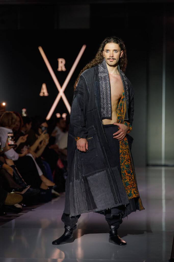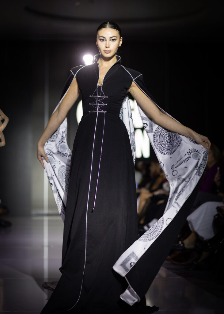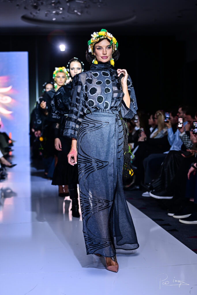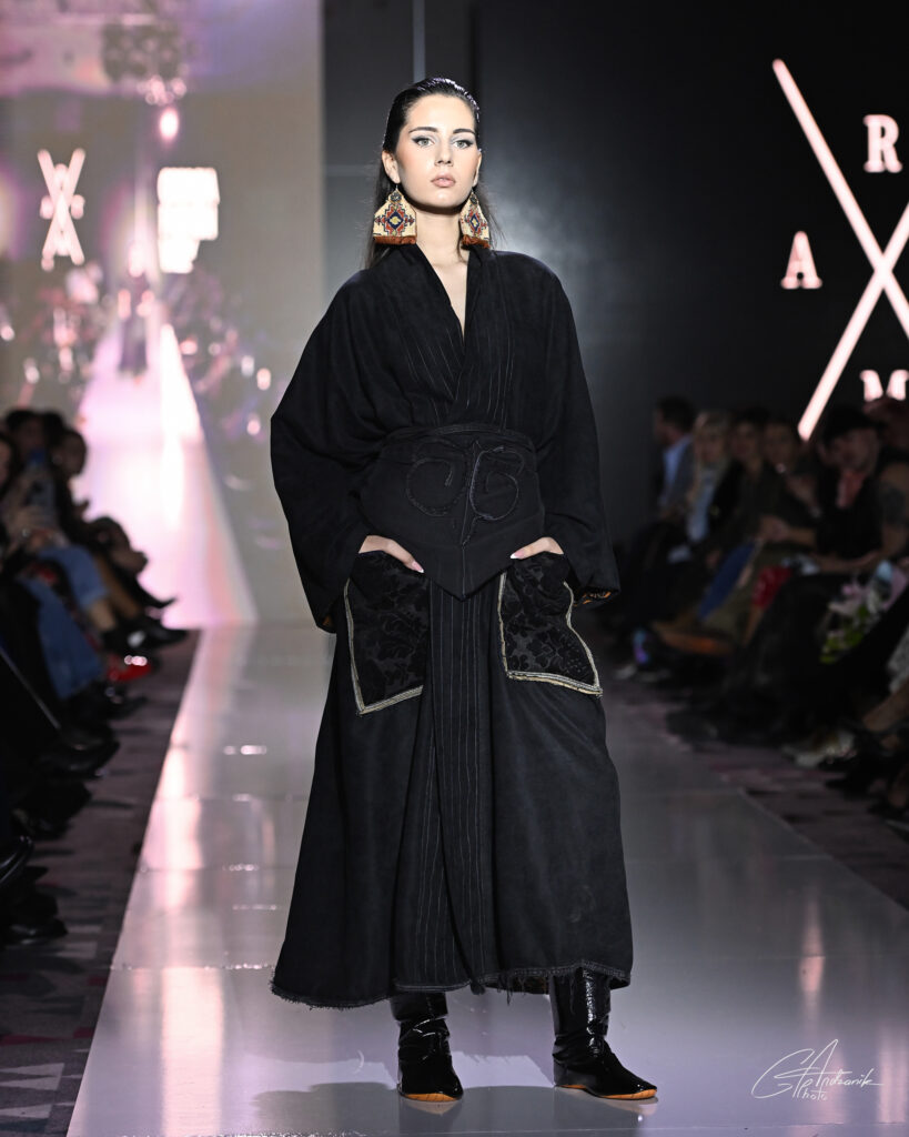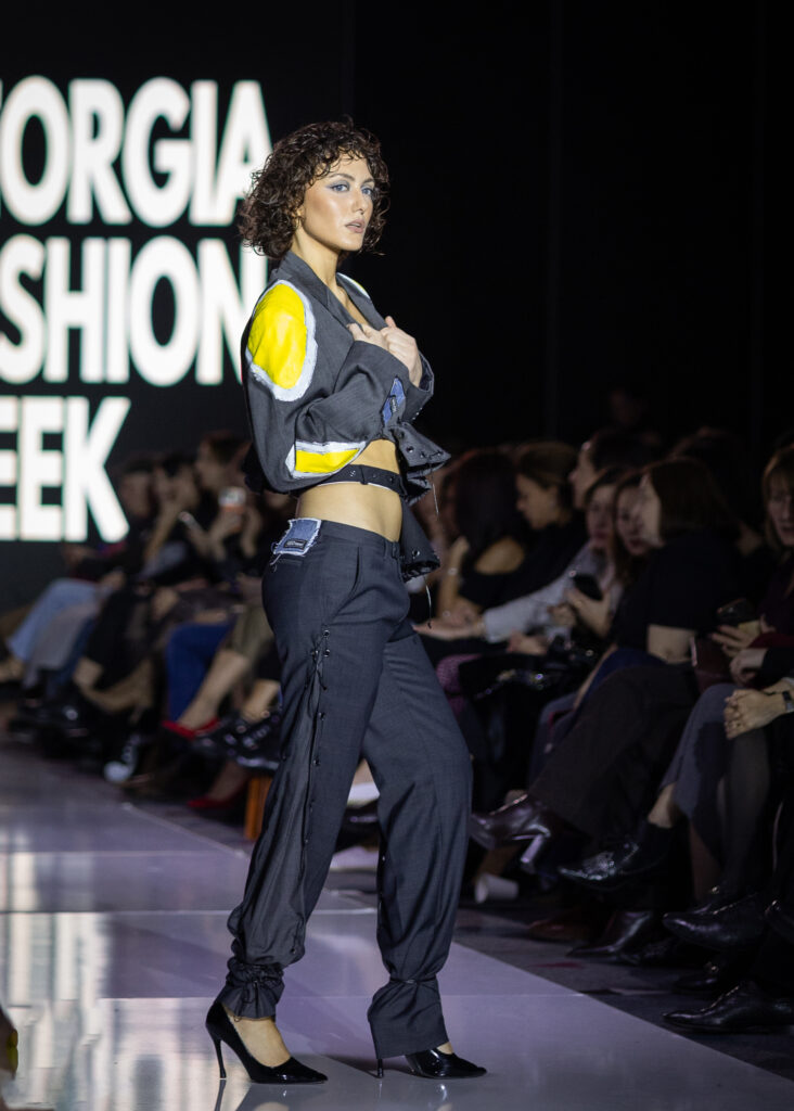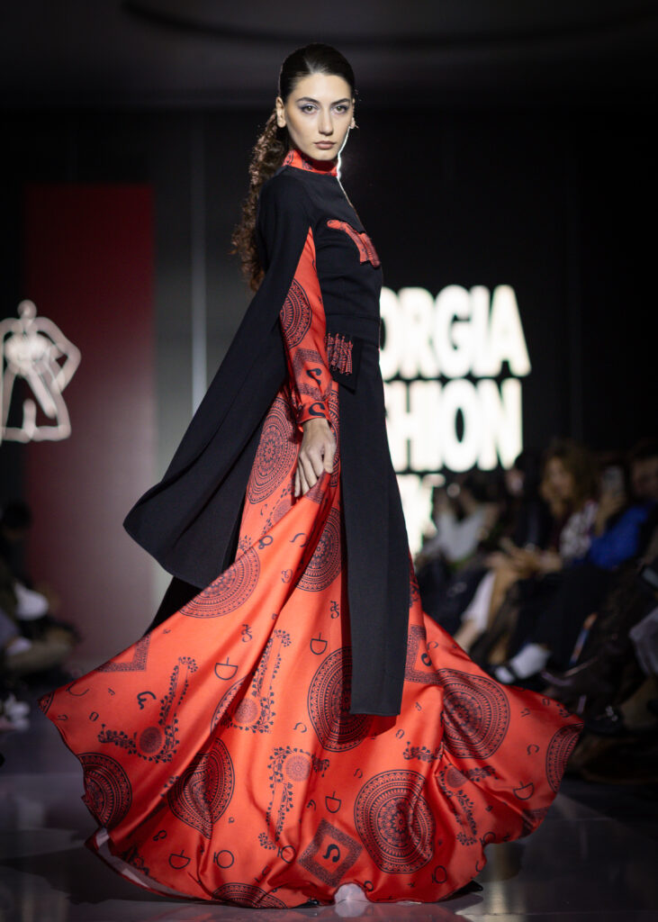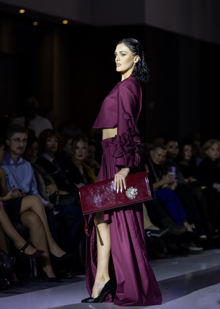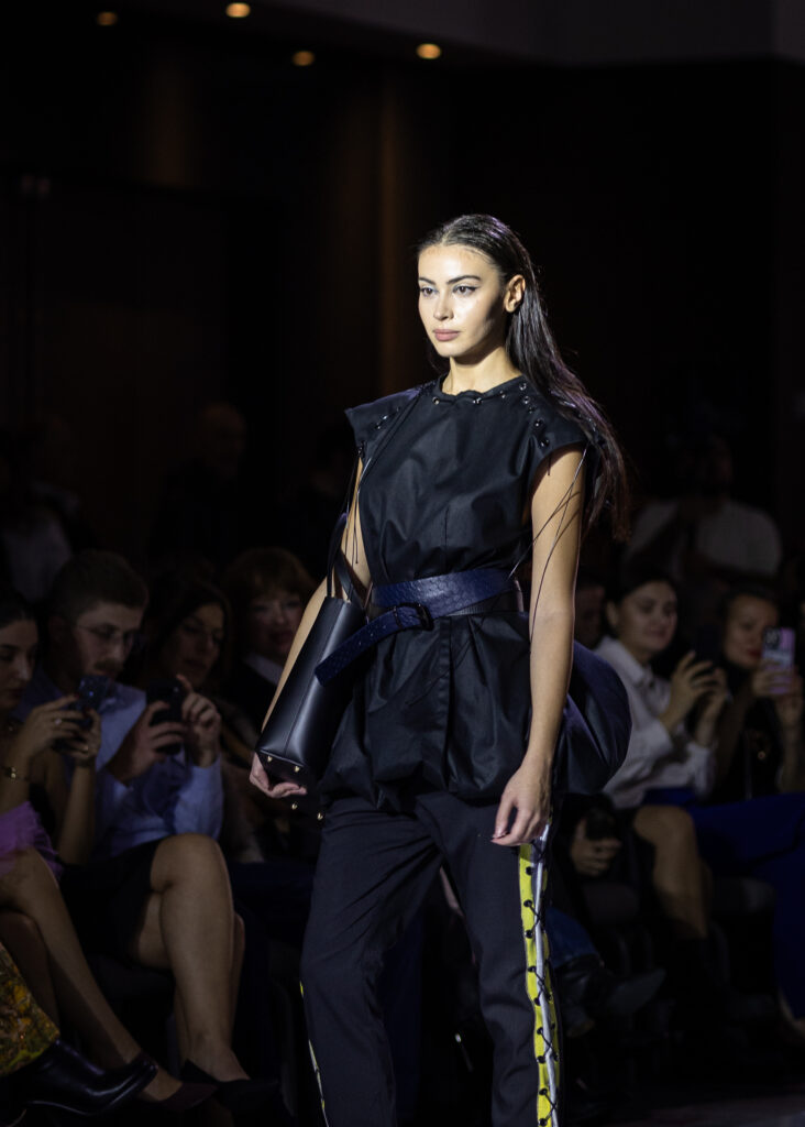 A young Georgian brand, –NEW SAUKUNE– presented a clothing collection created with ethno-inspired motifs. What particularly stood out were the fabrics featuring prints inspired by the Georgian alphabet, highlighting the collection’s uniqueness and its respect for ancient traditions while bringing them into a modern context.