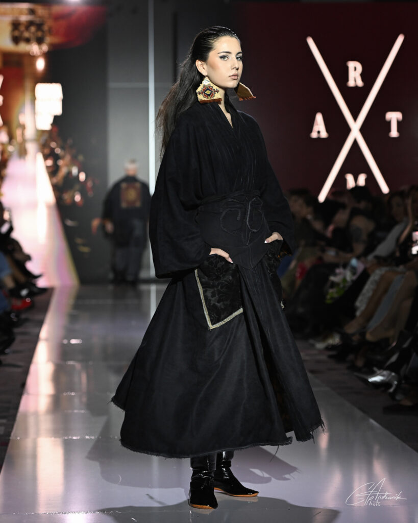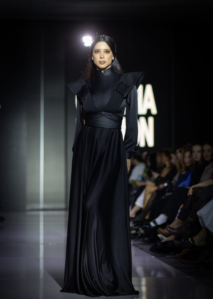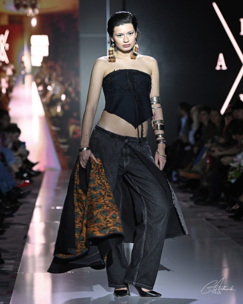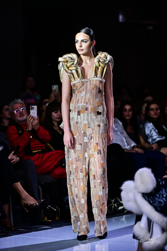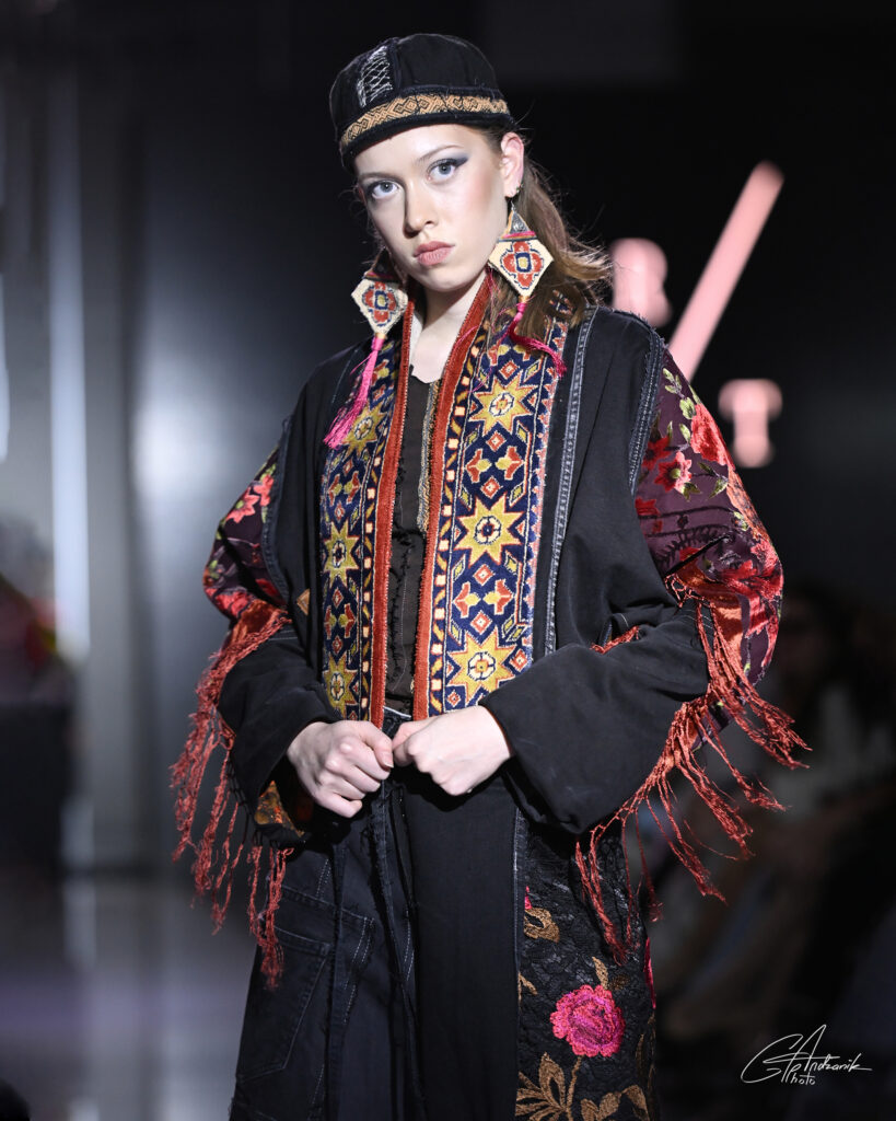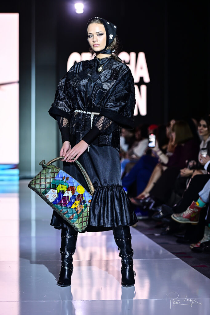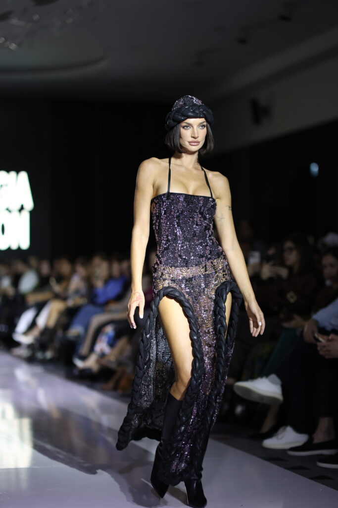 A young Georgian brand, –NEW SAUKUNE– presented a clothing collection created with ethno-inspired motifs. What particularly stood out were the fabrics featuring prints inspired by the Georgian alphabet, highlighting the collection’s uniqueness and its respect for ancient traditions while bringing them into a modern context.