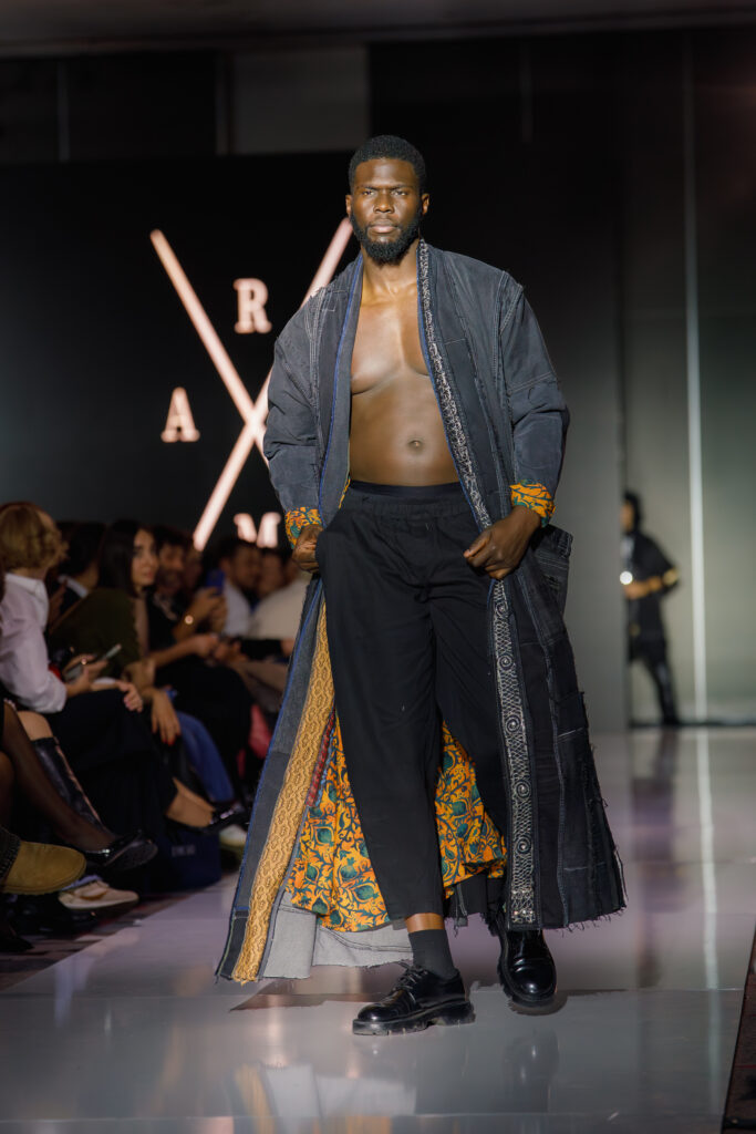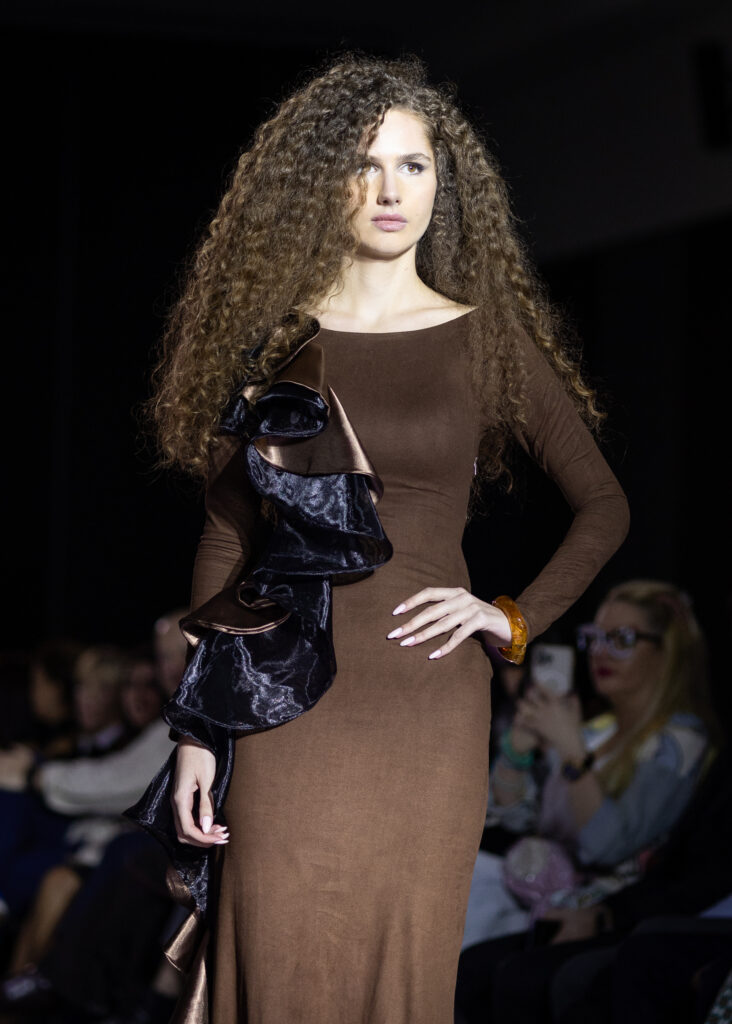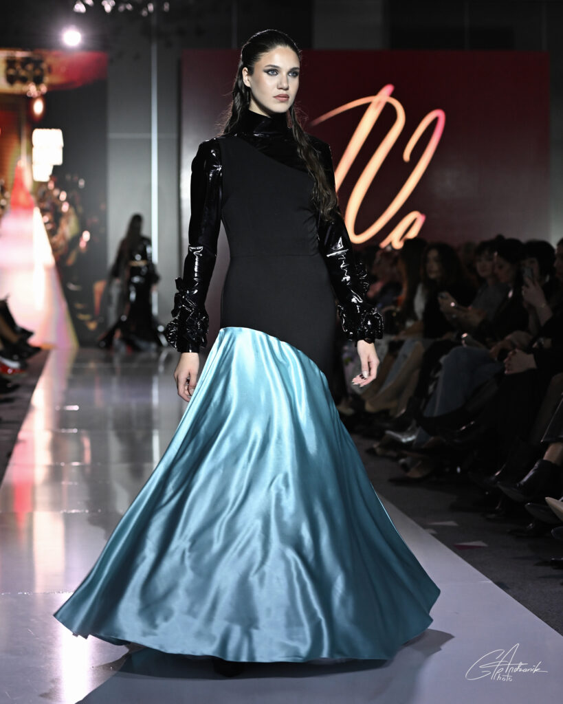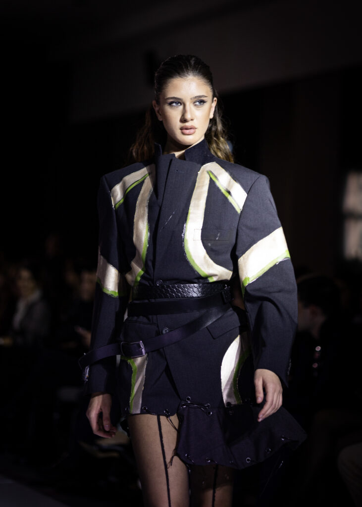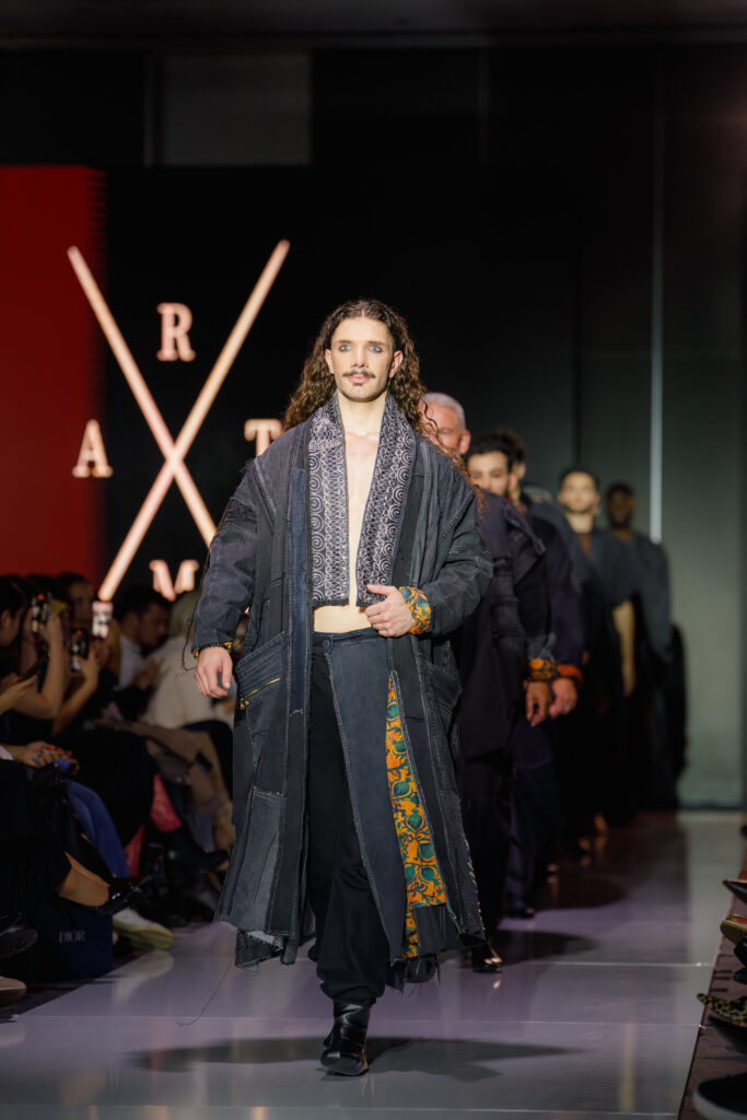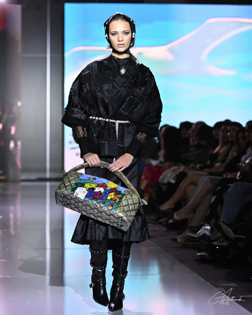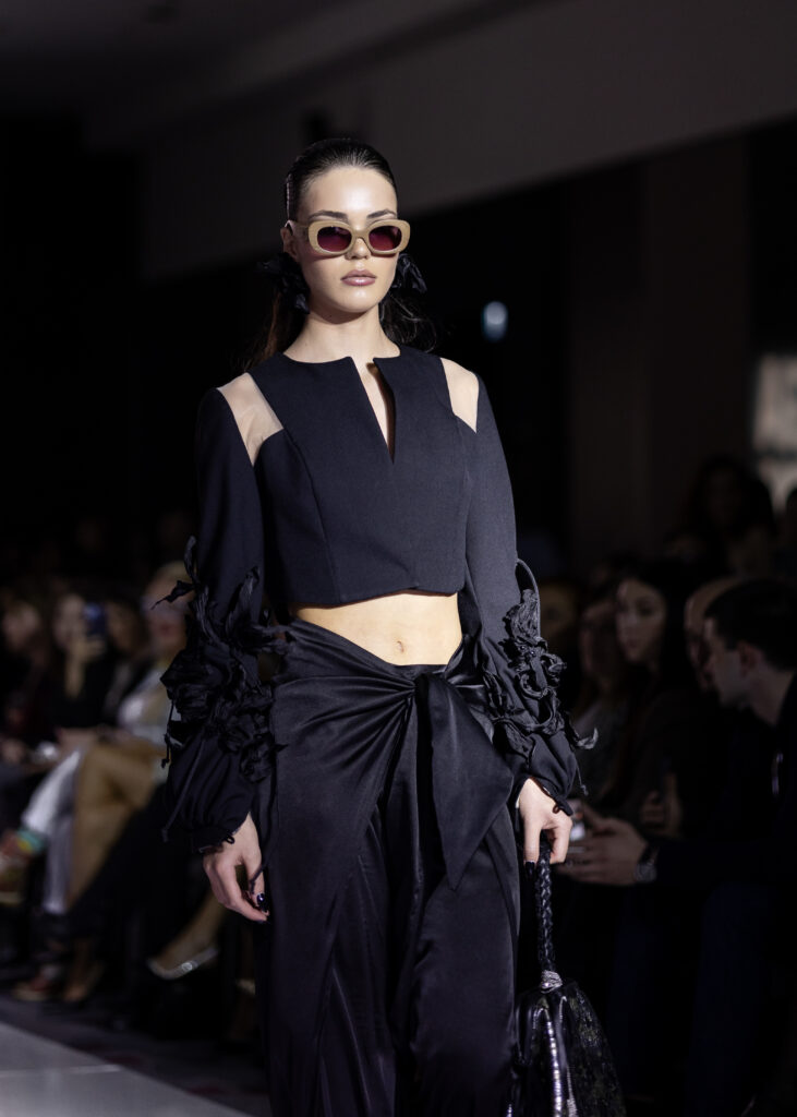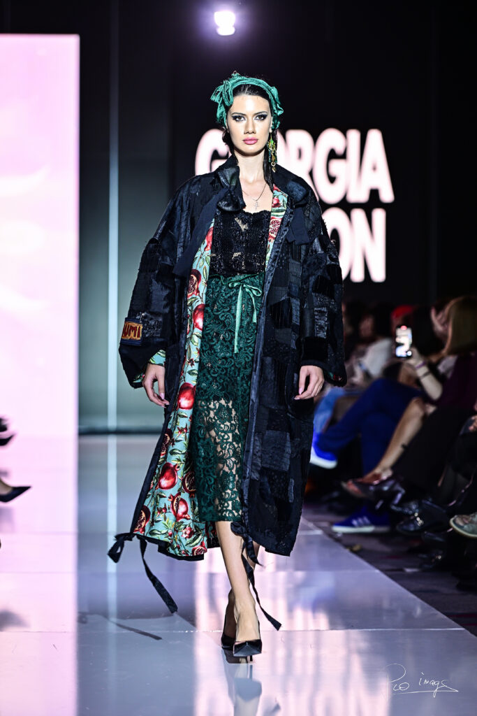 A young Georgian brand, –NEW SAUKUNE– presented a clothing collection created with ethno-inspired motifs. What particularly stood out were the fabrics featuring prints inspired by the Georgian alphabet, highlighting the collection’s uniqueness and its respect for ancient traditions while bringing them into a modern context.