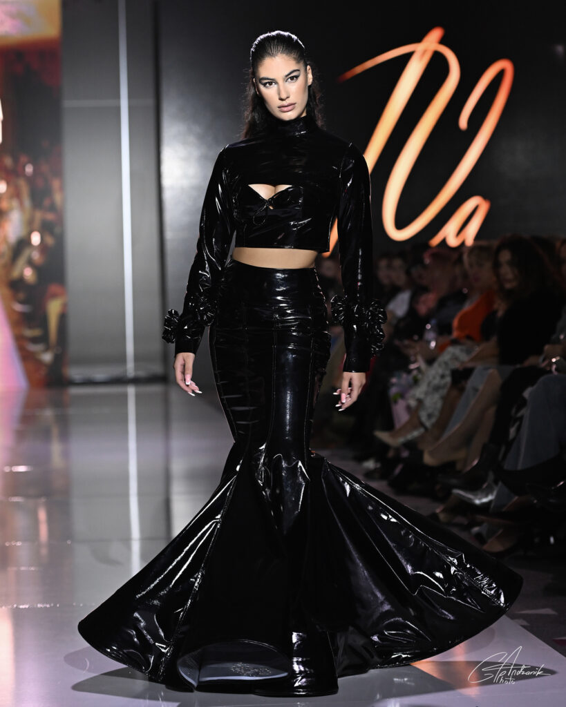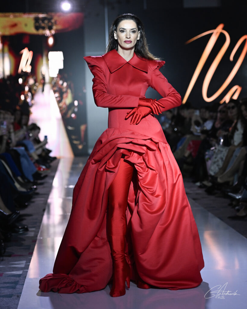 Kolekcija IVA PAPIDZE bila je intrigantna i jedinstvena, izgrađena oko simbolike petog elementa. Komadi u crvenoj, crnoj i beloj boji bili su praćeni mističnom melodijom koja je pojačala atmosferu.