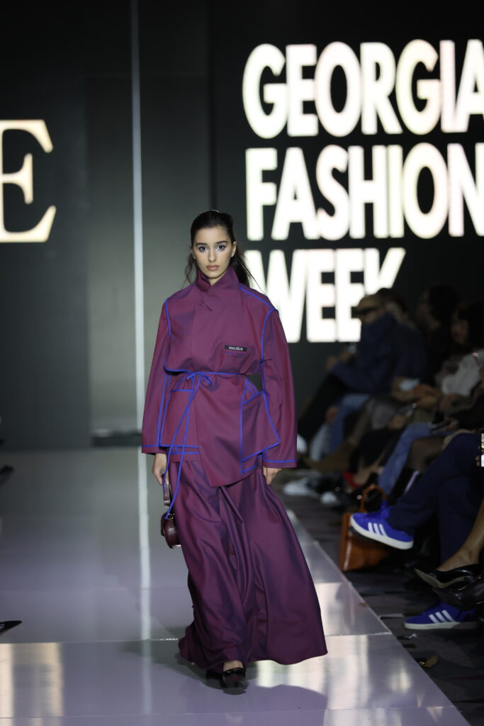 Mladi gruzijski brend NEW SAUKUNE predstavio je kolekciju inspirisanu etno-motivima. Posebno su se izdvojile tkanine sa printovima nadahnutim gruzijskim alfabetom, naglašavajući jedinstvenost kolekcije i poštovanje prema drevnim tradicijama, dok ih istovremeno prenose u savremeni kontekst.