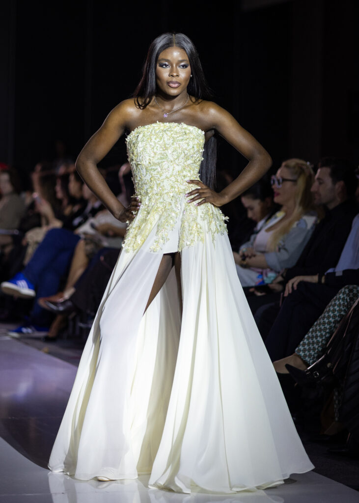 This idea was further enhanced by the models’ performance, as they skillfully used the light textures of the fabrics to emphasize the aesthetics and visual language that Kokaia brought to the runway.
