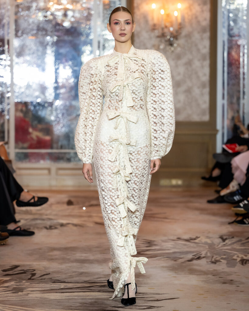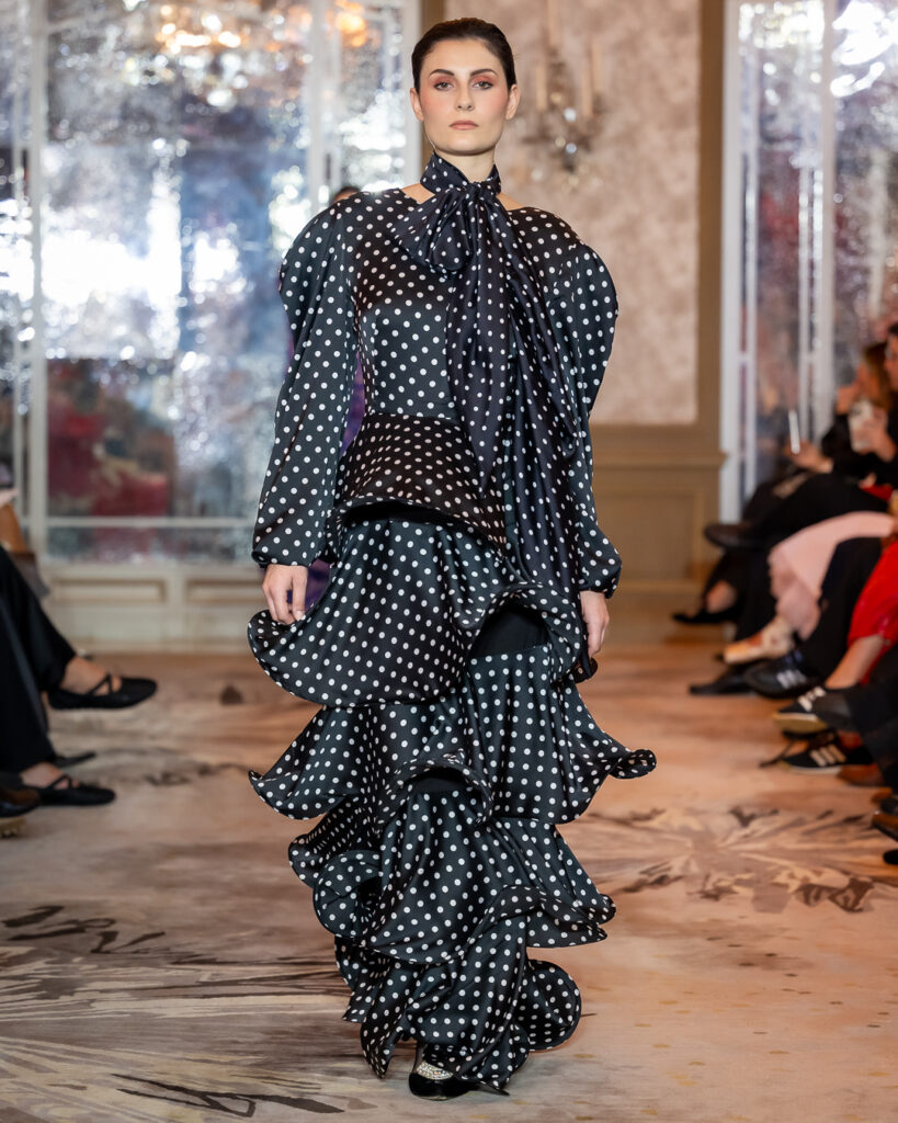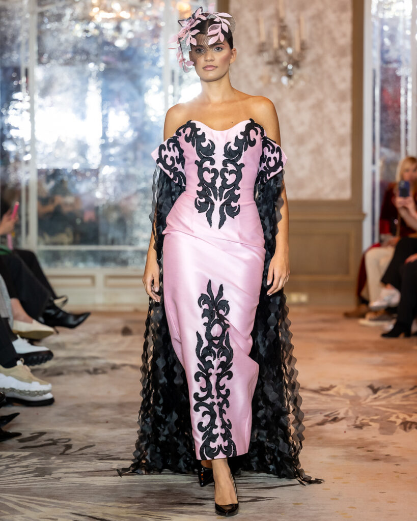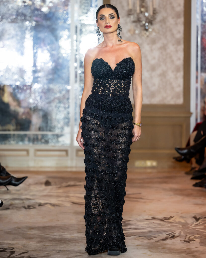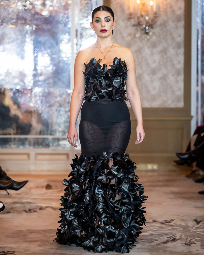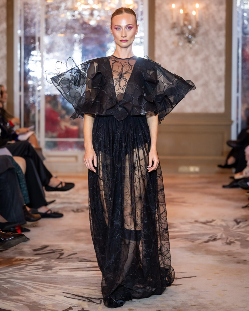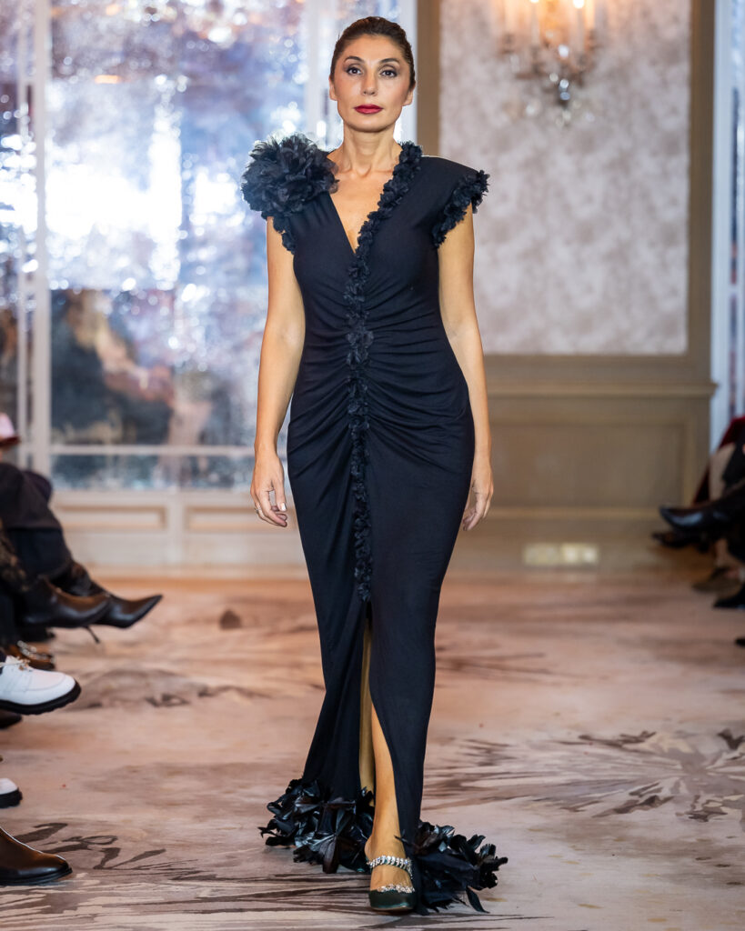 Keti Chkhikvadze, designer of MAISON KETI, unveiled a striking collection defined by sculptural silhouettes, cascading movement, and a celebration of unapologetic femininity.