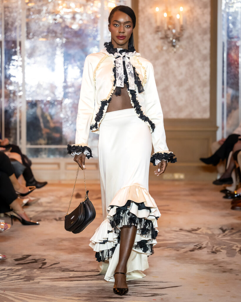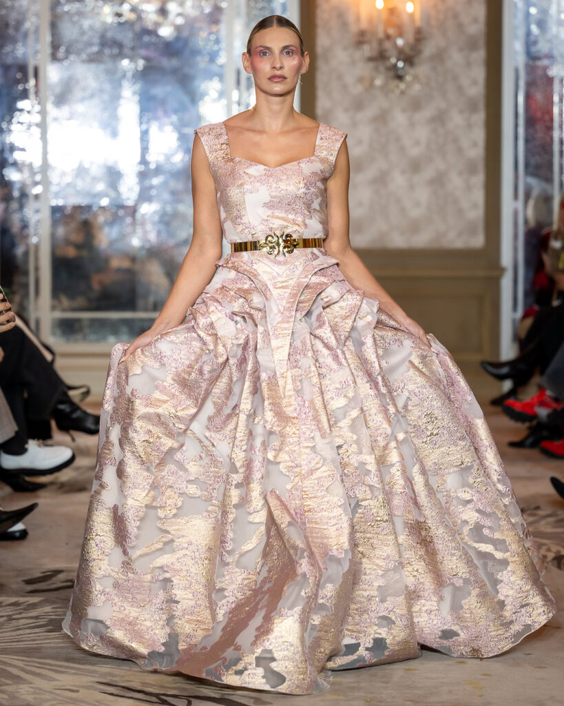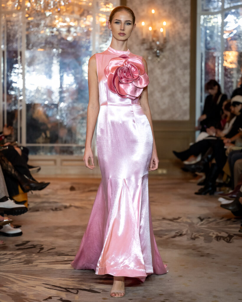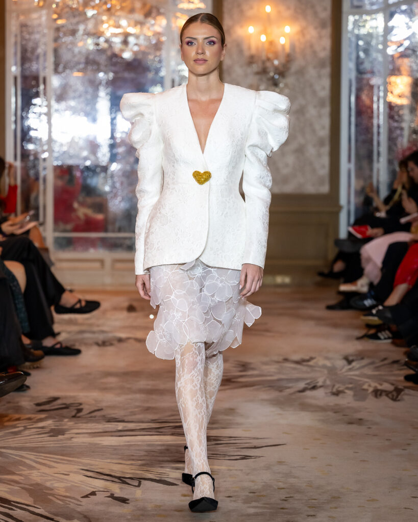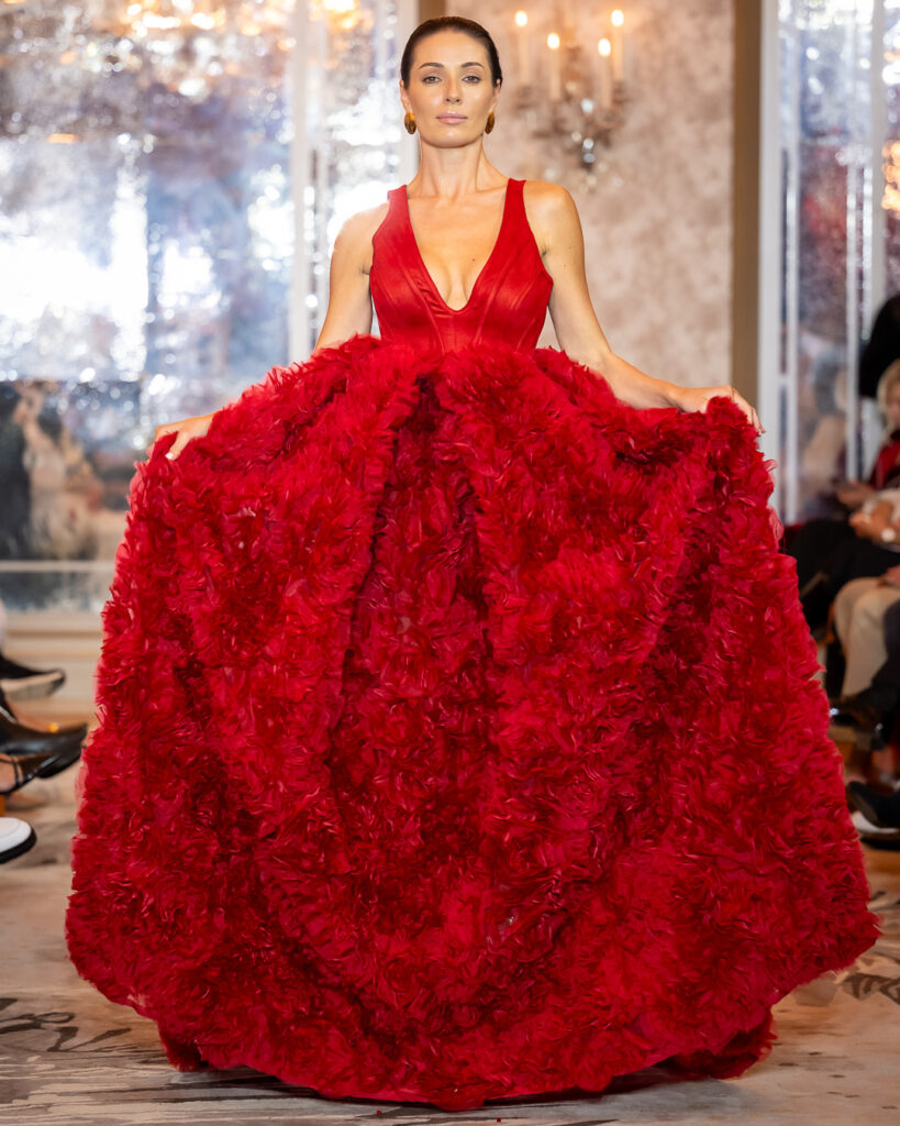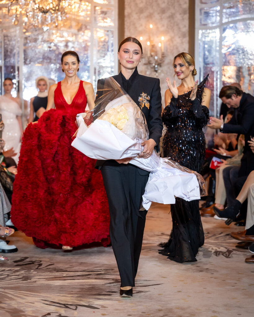 Keti Chkhikvadze, designer of MAISON KETI, unveiled a striking collection defined by sculptural silhouettes, cascading movement, and a celebration of unapologetic femininity.