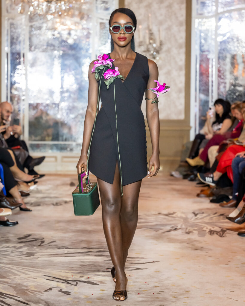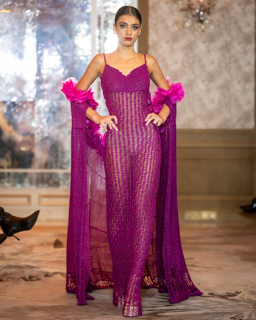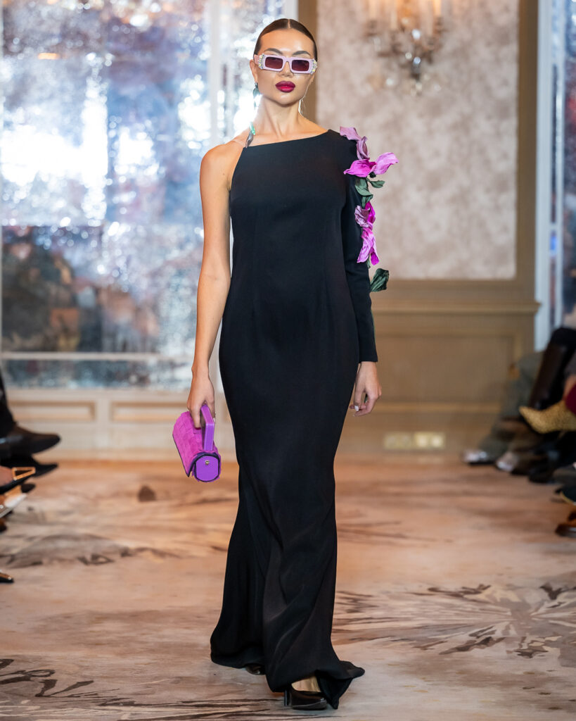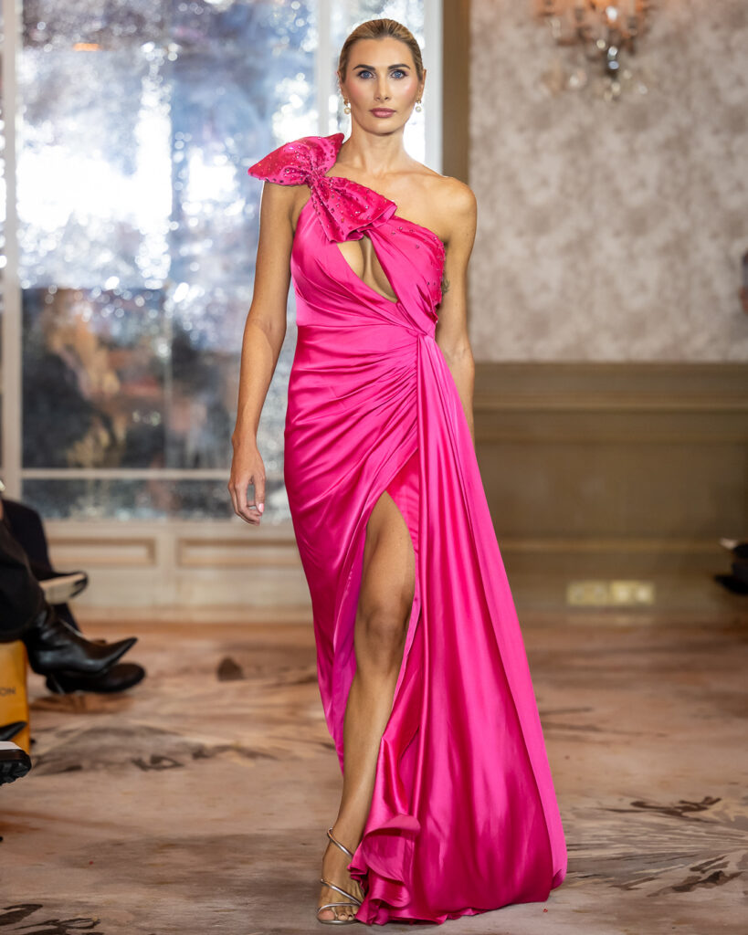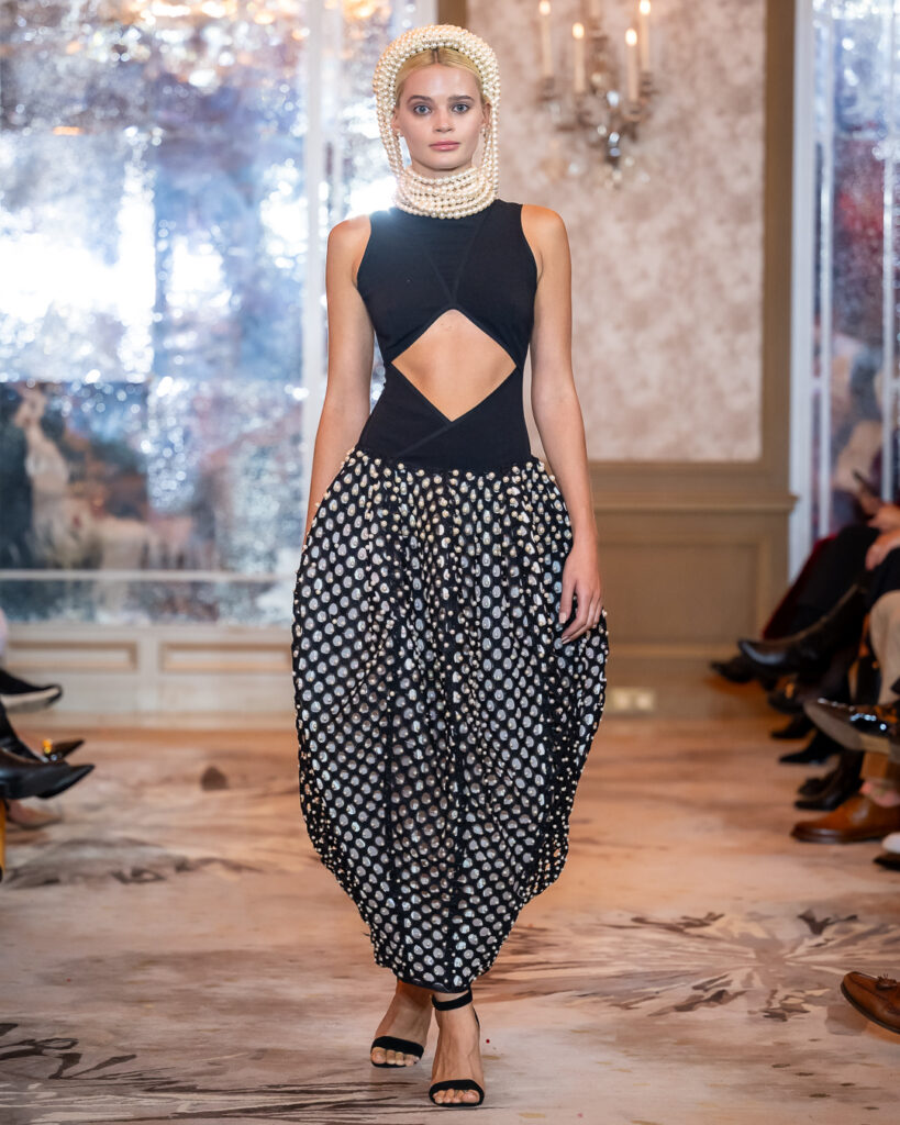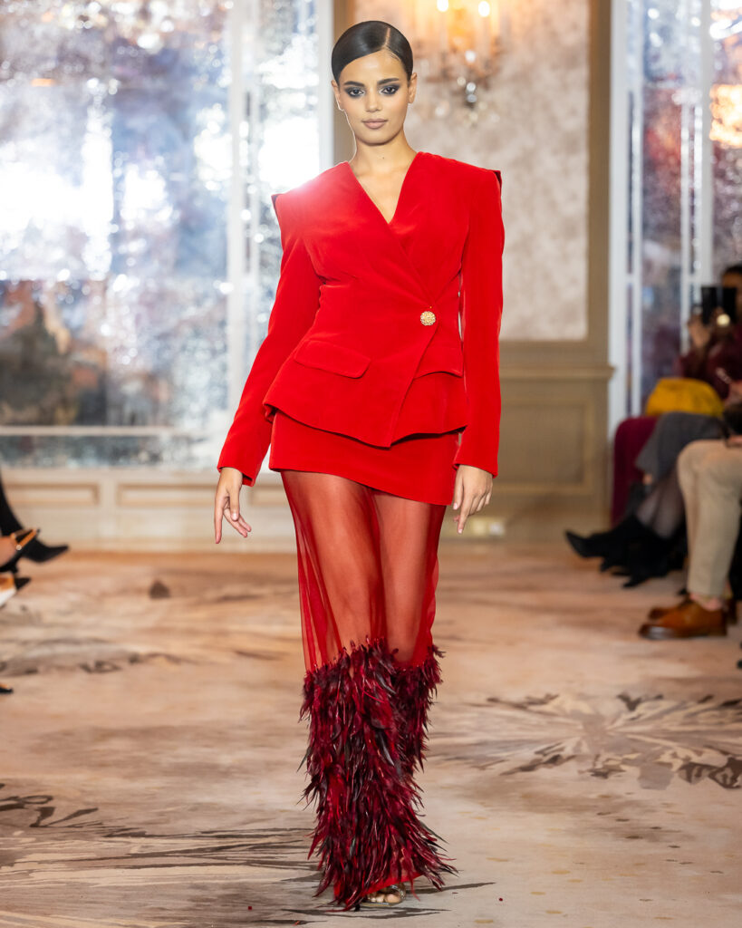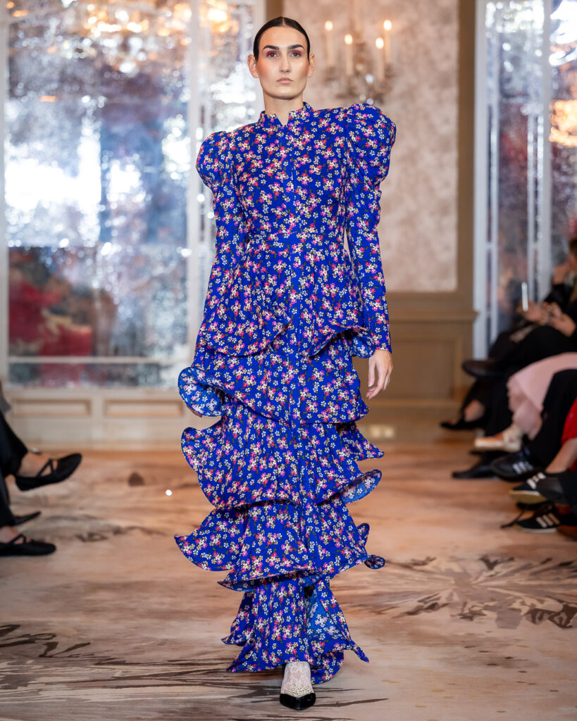 Keti Chkhikvadze, designer of MAISON KETI, unveiled a striking collection defined by sculptural silhouettes, cascading movement, and a celebration of unapologetic femininity.