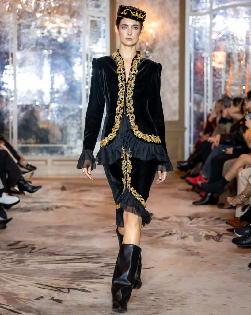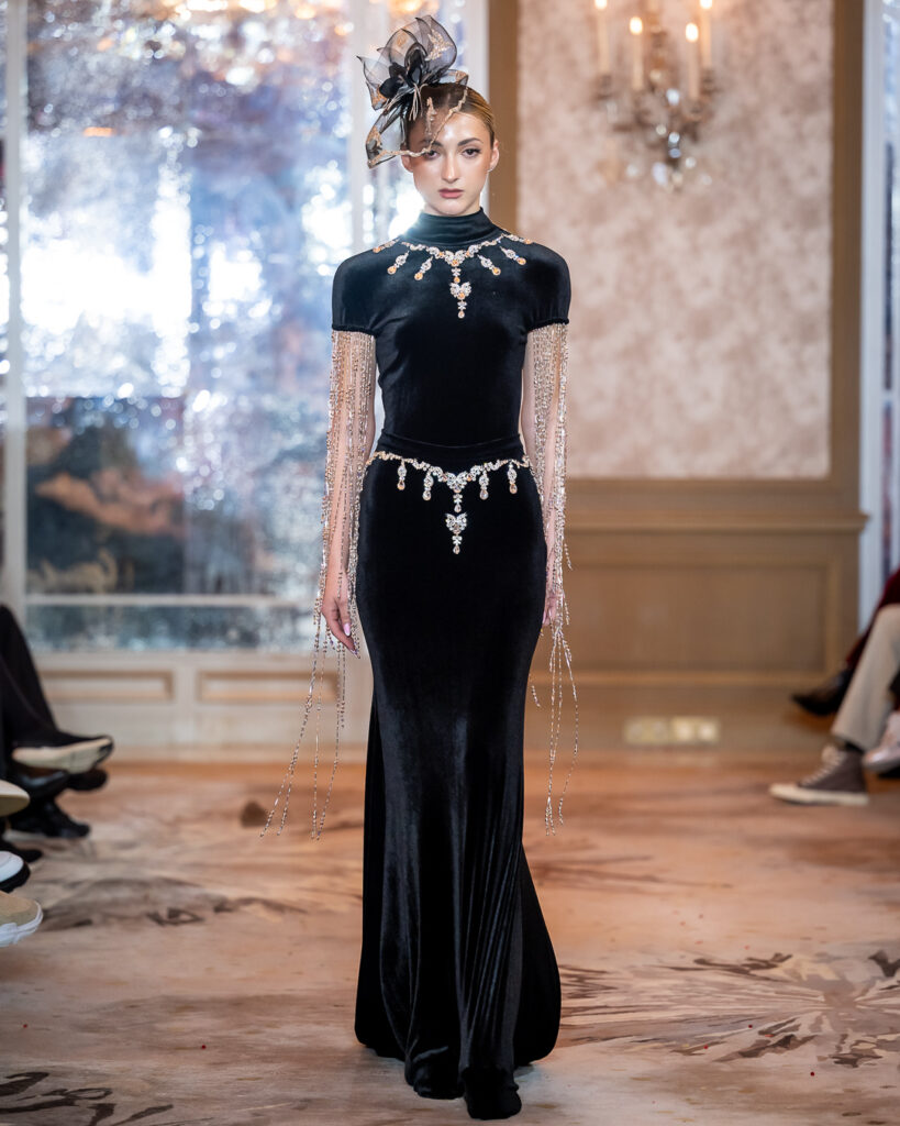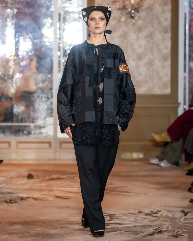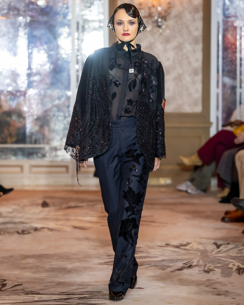 Kolekcija Sofie Kharchi zakoračila je na parisku pistu poput tihe, ali snažne himne — u dubokim crnim tonovima, slojevitim teksturama i skulpturalnim formama koje su istovremeno delovale arhaično i avangardno.