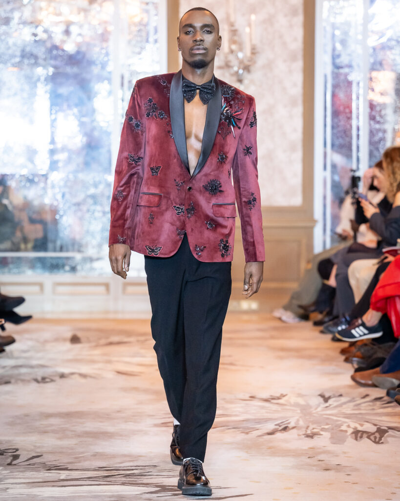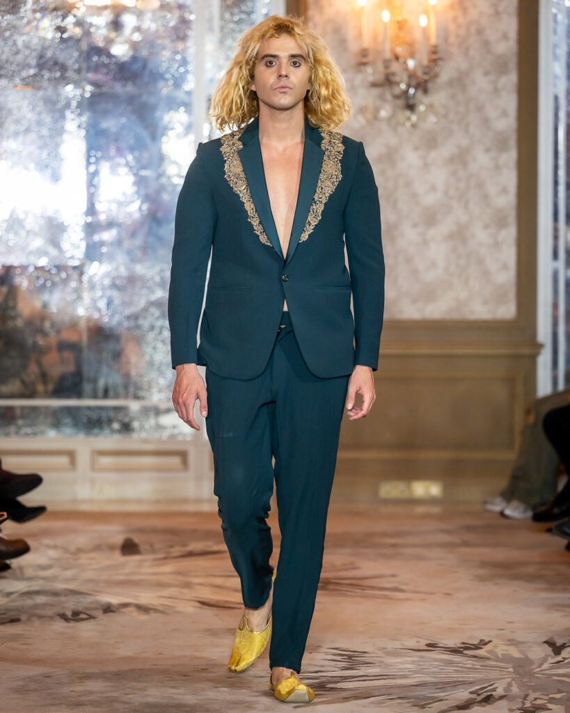 JASIVE presented Simbolo Cuadra — not just a collection, but a powerful declaration of rebirth after 25 years in fashion. Unveiled at the legendary Hôtel Plaza Athénée in Paris, the line reflects a mature evolution of identity, balancing feminine fluidity with masculine structure through noble leathers, liquid silks, hand-stitched lace, jacquards, and intricate embroidery.