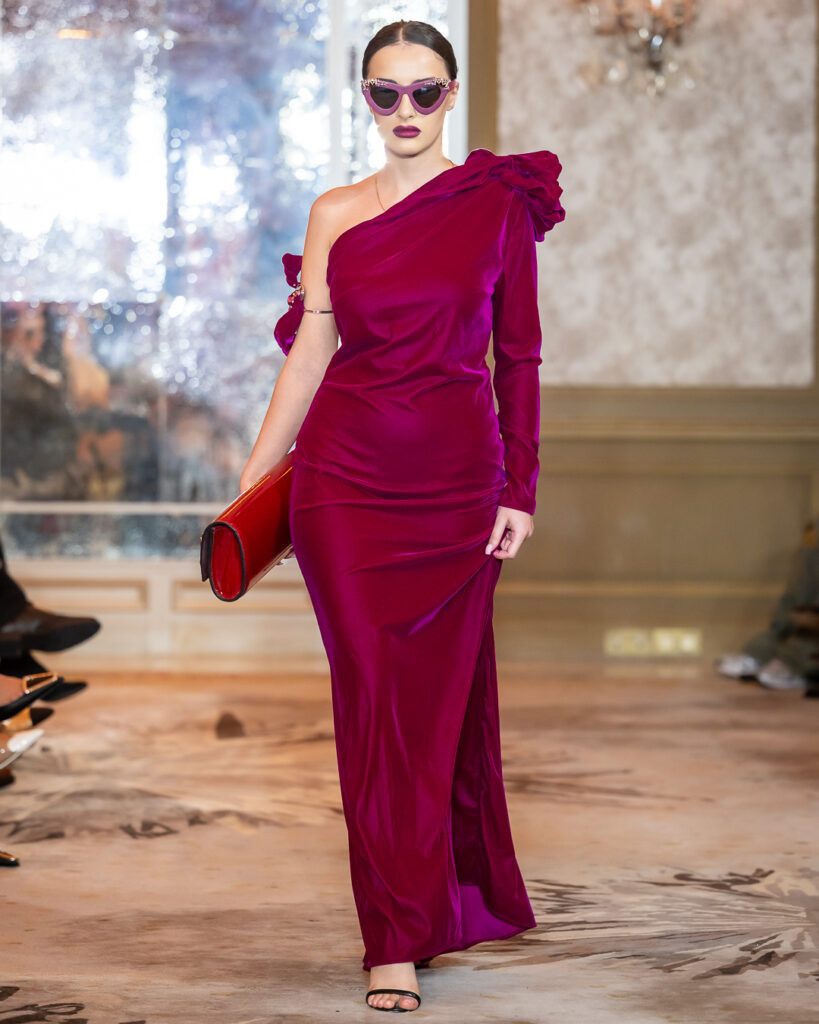 Strukturisane siluete u burgundi, crnoj i dragocenim tonovima dopunjene su skulpturalnim volanima, upečatljivim aksesoarima i naočarima koje redefinišu modernu ženstvenost. Kolekcija je posvećena ženama koje vode s namerom — neustrašive, a sofisticirane, izražajne, a odmerene.