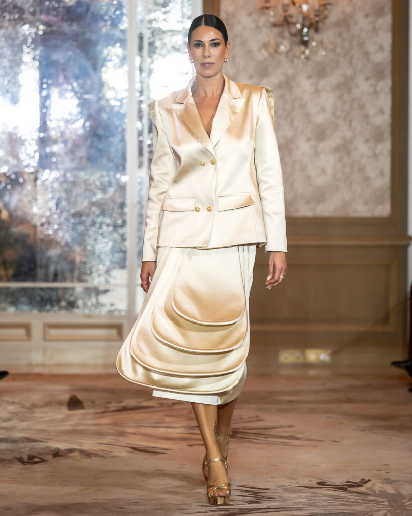 Each of the twenty haute couture looks represents a “cuadra” — a personal life chapter translated into design — paying homage to the women who shaped the designer’s journey. Every detail celebrates artisanal excellence, from sculpted boots to pearl embellishments, resulting in silhouettes that are timeless, emotional, and deeply personal.