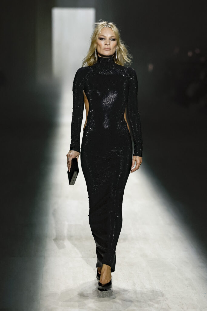 Na pisti su se pojavili i brojni upečatljivi modeli: Emily Ratajkowski u pripijenoj mini haljini – gotik-glam verzija Gabbriette, Vivian Wilson u retkom izlasku na modnu pistu, a za sam kraj — nonšalantna Kate Moss u uskoj haljini sa šljokicama i, u pravom Gucci maniru – ugrađenim G-stringom.