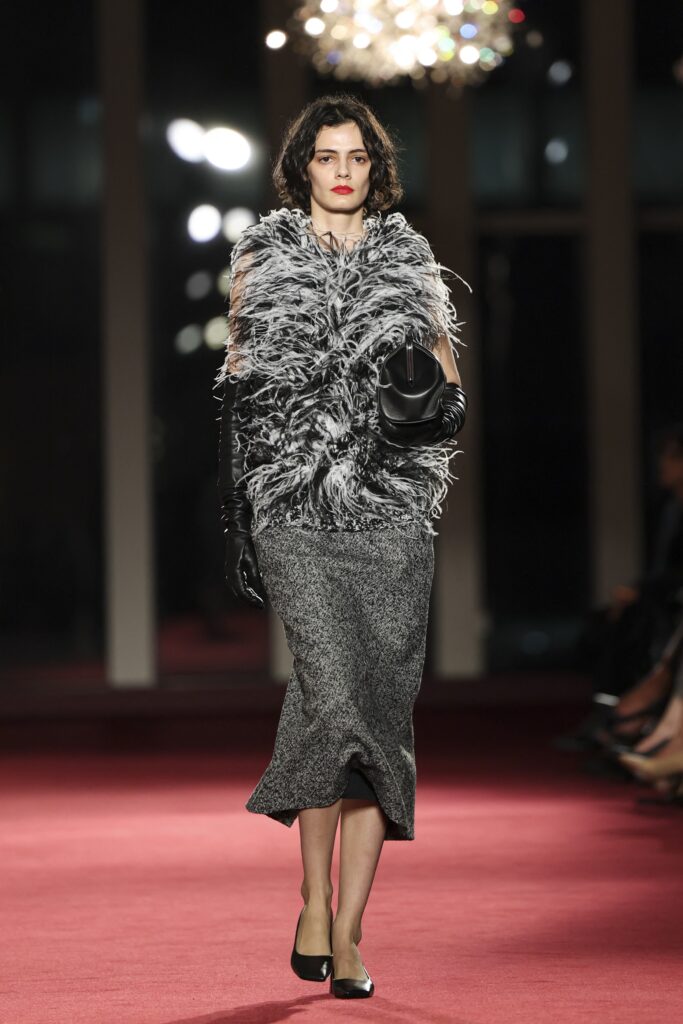 Naravno, bilo je operskih rukavica, ali i dugih, „vodopad“ minđuša, suknji sa perjem, providnih bluza nošenih ispod odela, kao i svetlucavih broševa — i za muškarce! Ukratko, večernje drame nije manjkalo. Pernati detalji krasili su i aksesoare — torbe, cipele i šešire. Za one koji žele istinski spektakularan ulazak, tu je crveni satenski operski plašt, kao i raskošni, jarkocrveni kaput od veštačkog krzna dostojan Mary J. Blige (Kors se pravog krzna odrekao 2018. godine).