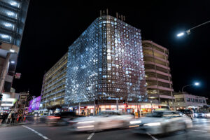 Set je uređen tako da podseća na fabričku kantinu: publika je sedela na stolovima sa melaminskim površinama, pod je bio prekriven crvenim gumiranim slojem, a prostorom se širio blag miris sredstva za čišćenje.