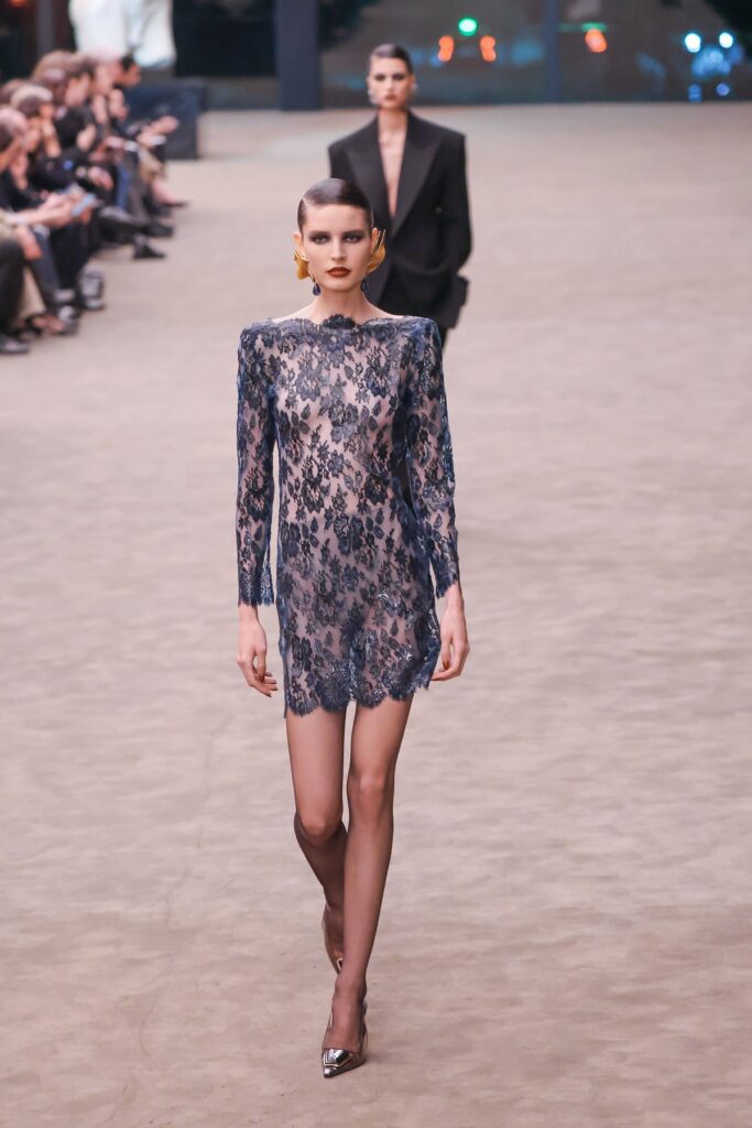 Neposredno pre nego što je Vaccarello izašao na pistu da se pokloni publici, pogled je sa **Trocadéro**a padao ka osvetljenoj Eiffel Tower, a u pozadini se mogao nazreti i deo reke Seine River. Tu je i čuvena leva obala, Rive Gauche, naziv koji je Yves Saint Laurent nekada koristio za svoj brend – simbol boemskog duha njegove prve klijentele i slobode da se moda koristi kao sredstvo ličnog izražavanja, radoznalosti i pomeranja granica. Vaccarello možda ne stvara odeću namenjenu ekscentričnim damama sa leve obale u doslovnom smislu, ali je tokom poslednjih deset godina pokazao da hrabrost i odvažnost u modi razume veoma dobro.