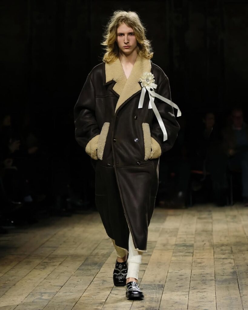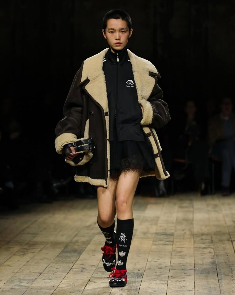 Da li Rocha skreće ka blokecore estetici? Delovalo je upravo tako. Jedna od ključnih referenci ove sezone bila joj je serija fotografija Pony Kids iz devedesetih, autora Perry Ogden, koja prikazuje subkulturu irske radničke omladine – mladih jahača – odevenih u tipične komade sportski inspirisane, ležerne garderobe tog vremena. (Ogden je inače prošetao i na Rochinoj reviji za jesen/zimu 2023.)