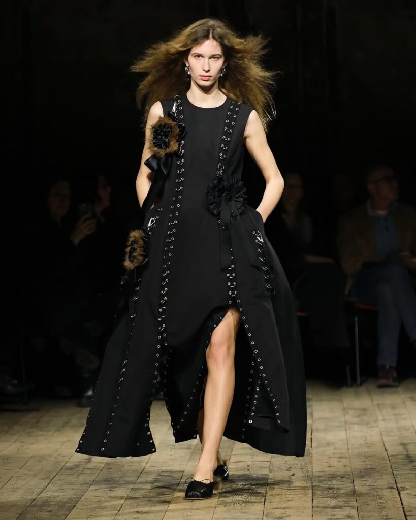 Danas je, međutim, na Londonskoj nedelji mode predstavila pomalo nestašniju, „tomboy“ verziju svojih prepoznatljivo ženstvenih komada. Manekenke su nosile predimenzionirane satenske bomber jakne i trenerke nalik onima kakve bi nosili fudbaleri uz dokolenice. (Ove sezone ostvarila je saradnju sa brendom Adidas Originals.)