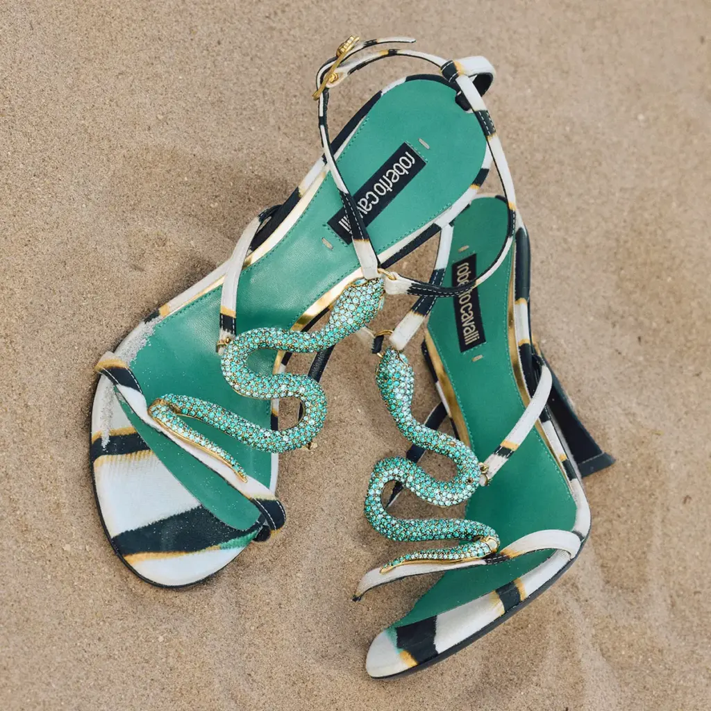 U ovom vizuelno moćnom i zavodljivom modnom narativu, lepršave svilene haljine susreću se sa skulpturalnim siluetama, dok kupaći kostimi i crop topovi postaju komadi za koje nije rezervisana samo plaža – već i letnji koktel bar, jahta, galerija pod otvorenim nebom. Sve je protkano vibrantnom paletom boja i karakterističnim animal printovima koji donose neizbežni Cavalli stav – senzualan, snažan i neustrašiv.