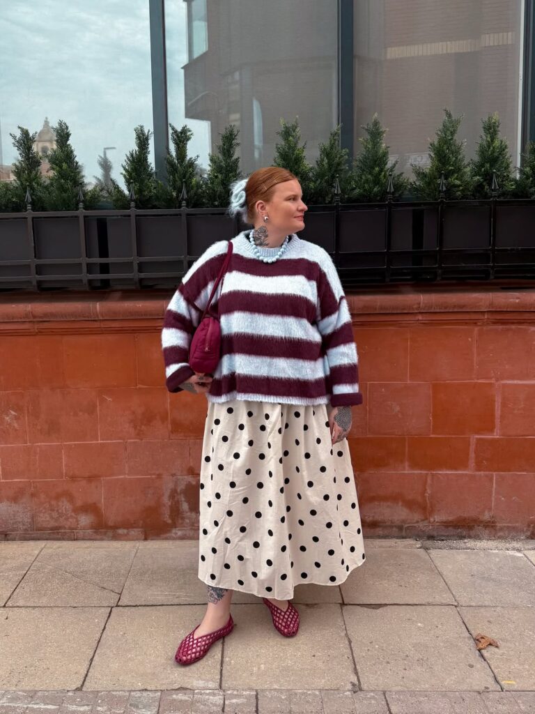Za sve ljubiteljke maksimalizma – ovo je vaša dozvola da tufne kombinujete sa drugim dezenima, na primer prugama. Zima je idealna sezona za slojevito oblačenje i eksperimente sa dezenima. Tufne se mogu kombinovati i međusobno – različite veličine i boje omogućavaju igru dimenzijom i bojom, čime outfit dobija dinamiku i stil.