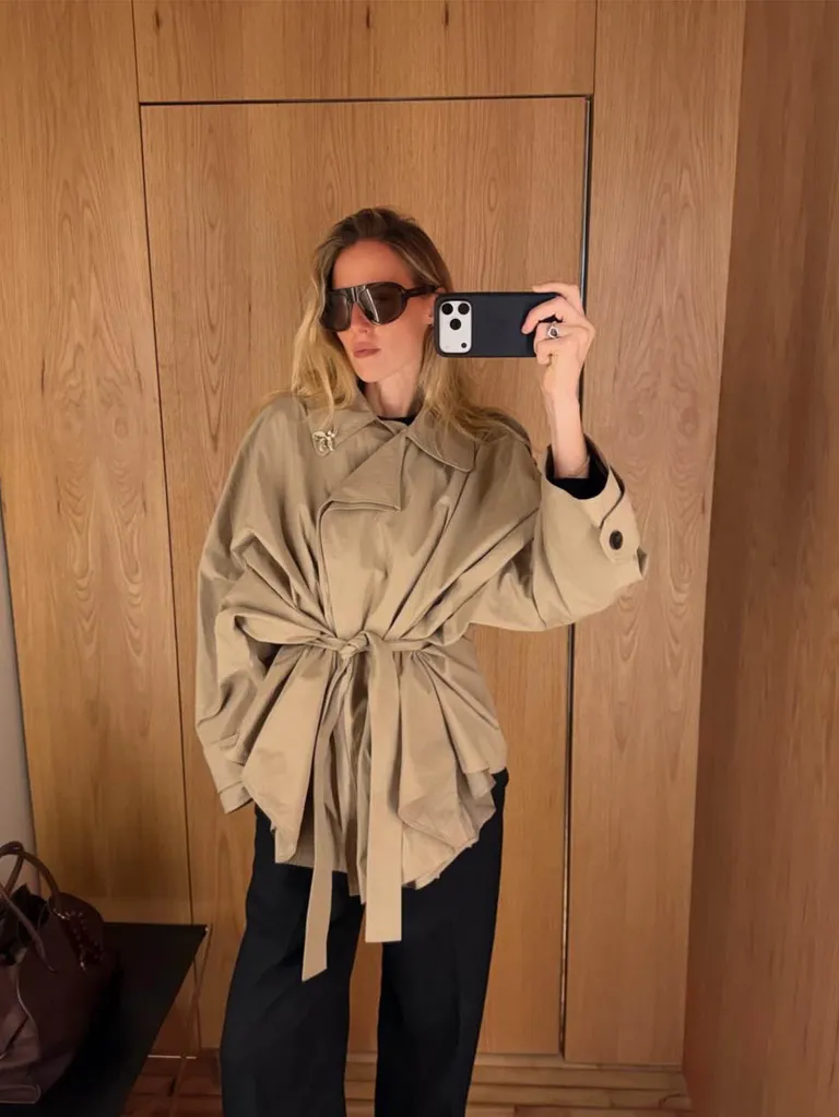 Jakne sa kaišem i skraćene trenč jakne brzo postaju moderna alternativa klasičnom trenču. Skraćeni kroj deluje svežije za proleće, dok kaiš u struku dodaje trenutnu strukturu i eleganciju.