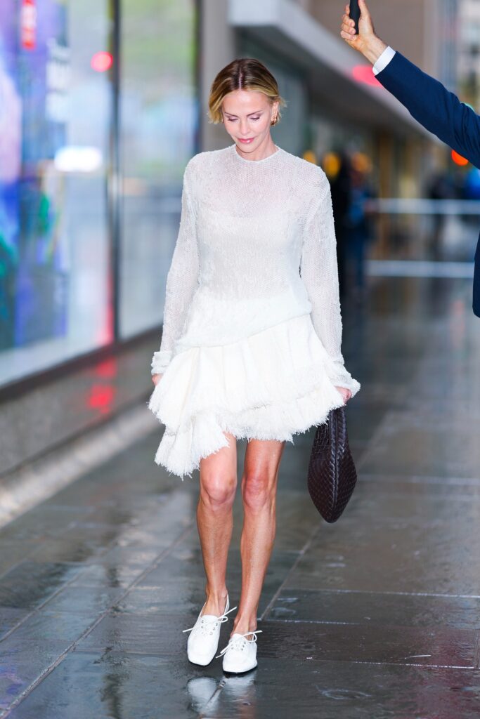 Ova godina je zvanično postala godina „mekih“ cipela. Poslednjih meseci mnogo se pisalo o minimalističkim baletankama i mekim mokasinama, ali pojavio se novi stil ravne obuće koji brzo osvaja scenu i postaje it trend za 2026. godinu. U pitanju su mekane oksfordice — posebno modeli od bele kože. Upravo takav par nosila je Charlize Theron uz krem Bottega Veneta džemper i suknju, dok je viđena na Menhetnu.