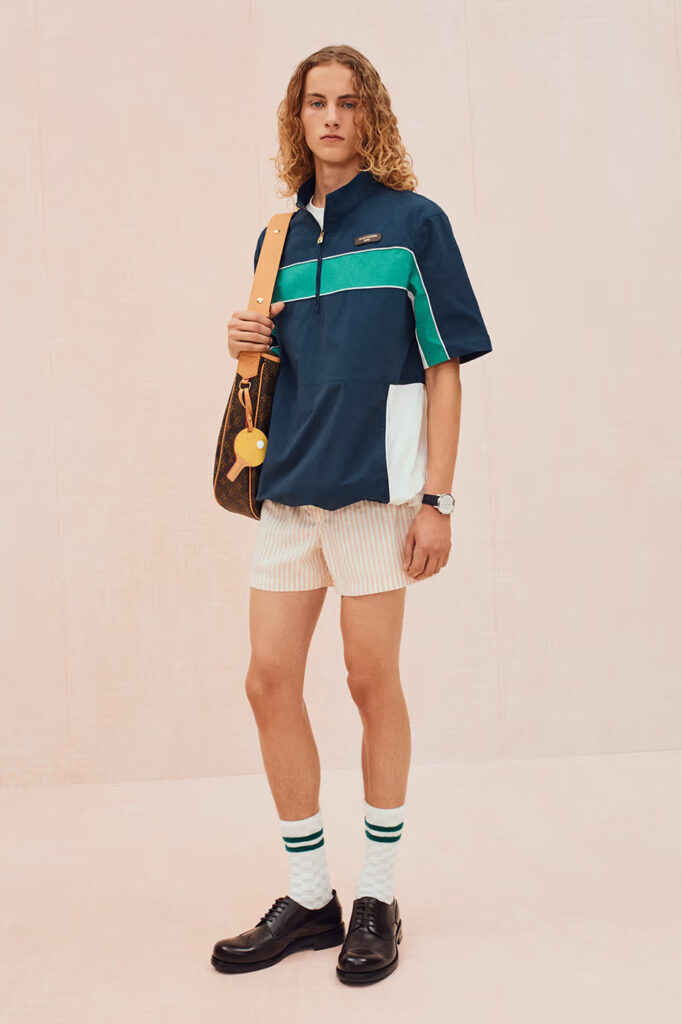 Aksesoari prate park tematski koncept. U kolekciji se nalaze Keepall torba sa odvojivim prekrivačima za teniske rekete, torba za ping-pong reket koja se nosi preko tela i torbe u obliku mlečnih kartona od Classic Monogram platna. Obuća se kreće od upečatljivih LV Tilted patika od patchwork denima do sofisticiranih LV Soft patika, kompletirajući kolekciju koja je istovremeno elegantna, praktična i radosno eksperimentalna.