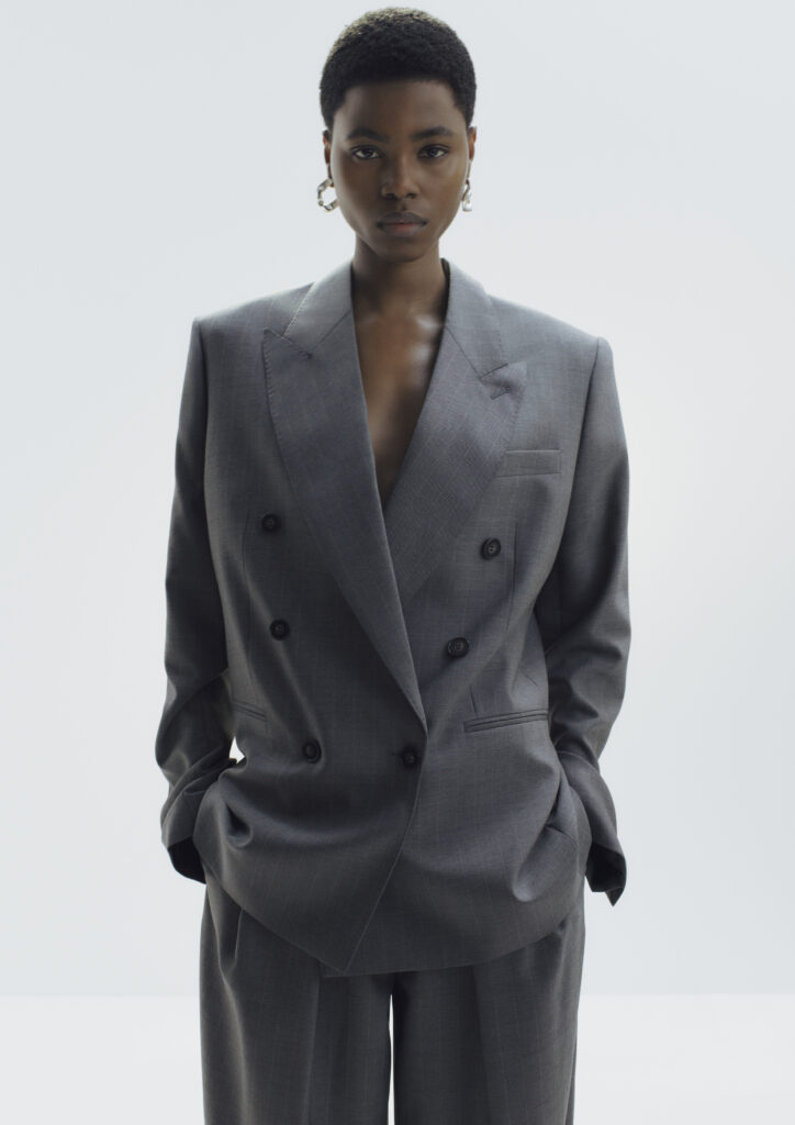Kolekciju definiše i promišljen odnos prema materijalima — sa naglaskom na reciklirane komponente, organski pamuk, vunu sertifikovanu prema RWS standardu, kao i inovativne obloge dobijene iz sirovina poput industrijskog kukuruza i recikliranog biljnog ulja.