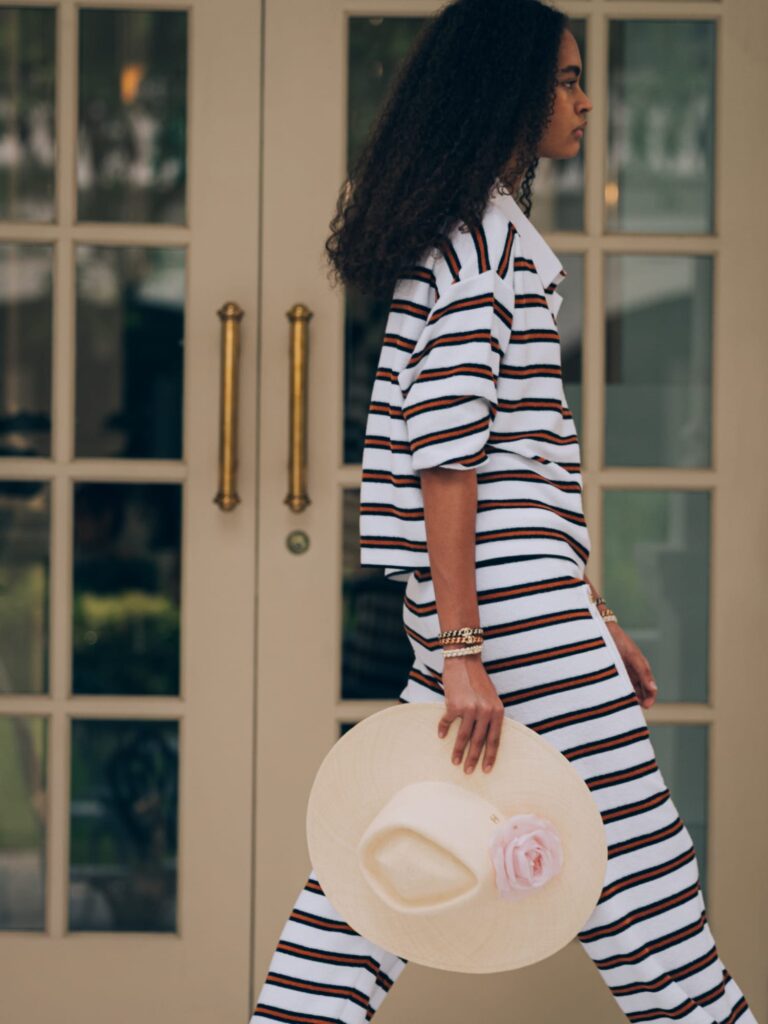 Na pisti su se susreli udobnost i ekstravagancija — Na pisti su se smenjivali pidžama kompleti od zlatnog lureksa, pastelne haljine od tafta, mini haljine od prugastog laméa i tvid odela obasjana nežnim tropskim svetlom. Svilenkasti šalovi, vezani oko članaka, prizivali su duh nekih prošlih vremena, dok su prepoznatljivi Chanel kodovi – ravno krojene pantalone, kaputi i pruge – sve zajedno utemeljili u osećaj bezvremenske elegancije.