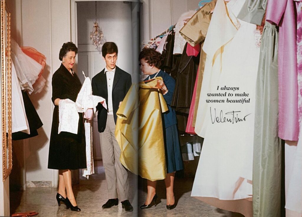 Dizajnirao je drugu venčanicu Prve dame Jackie Kennedy Onassis. Među njegovim pokroviteljima bile su i glumice poput Audrey Hepburn, kao i društvene ikone poput Nan Kempner. Uz svedočanstva modnih legendi kao što su Karl Lagerfeld, Carolina Herrera, i Oscar de la Renta, koje s oduševljenjem govore o Valentinovom dizajnerskom geniju, knjiga donosi i tople anegdote o glamuru prisutnom u njegovoj dolce vita. Tom Ford kaže: „Da sam žena, veći deo svoje večernje garderobe kupovao bih kod Valentina“, dok Claudia Schiffer prepričava kako ju je italijanska publika serenadirala dok je pozirala u Rimu za Valentino snimanje — morala je da izađe na balkon njegovog ateljea i mahne kako bi ih umirila.
