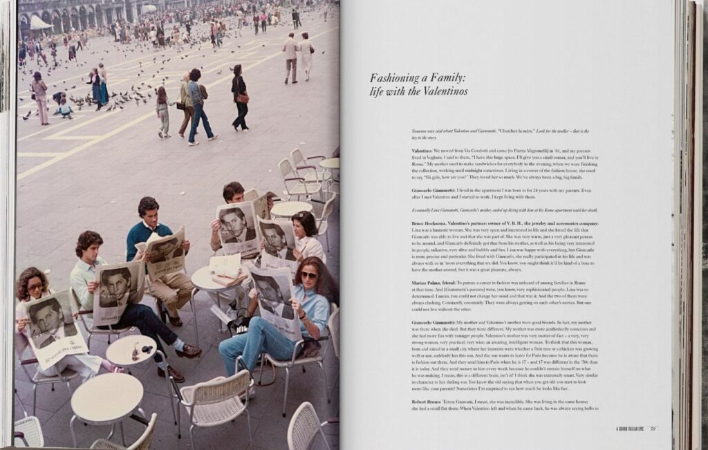 Ovaj ep od 576 stranic, istovremeno je fotografska hronologija i usmena istorija. Citati onih koji su Valentinu bili najbliži — kao i brojni njegovi sopstveni, zajedno s izjavama njegovog poslovnog partnera Giancarlo Giammetti — osvetljavaju začetke modne PR industrije, savremenog oglašavanja i prêt-à-porter mode. Visokoenergetske fotografije suprotstavljaju raskoš Valentinovih kreacija pozadini ekstravagantnih italijanskih zabava. Crteži, magazinski editorijali i stare reklame popunjavaju praznine u narativu.