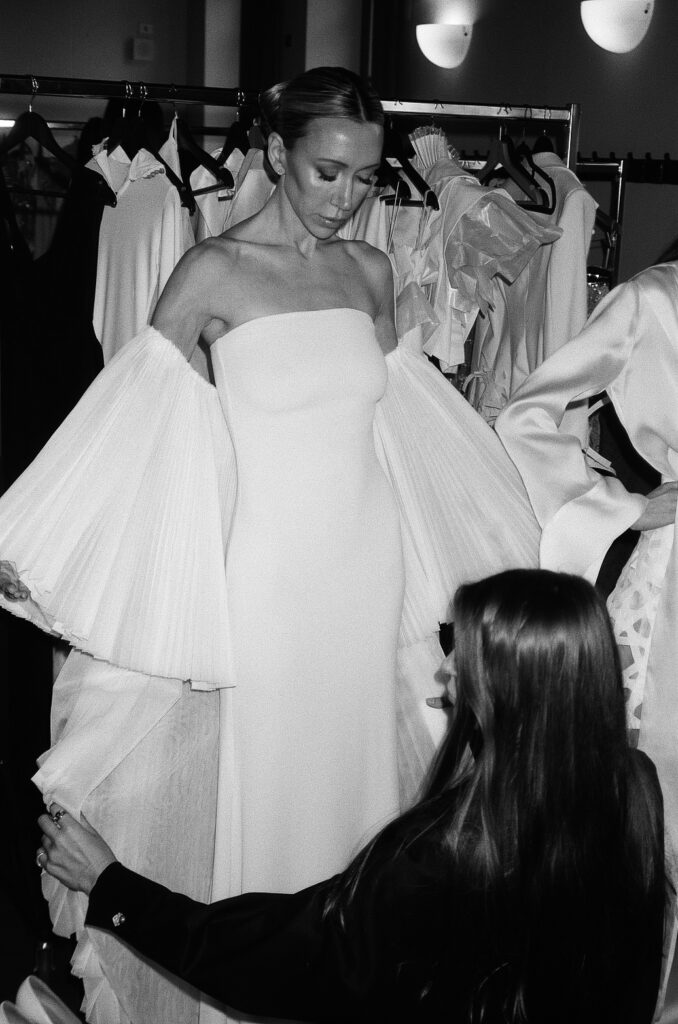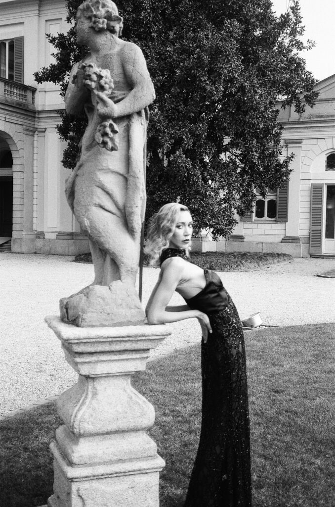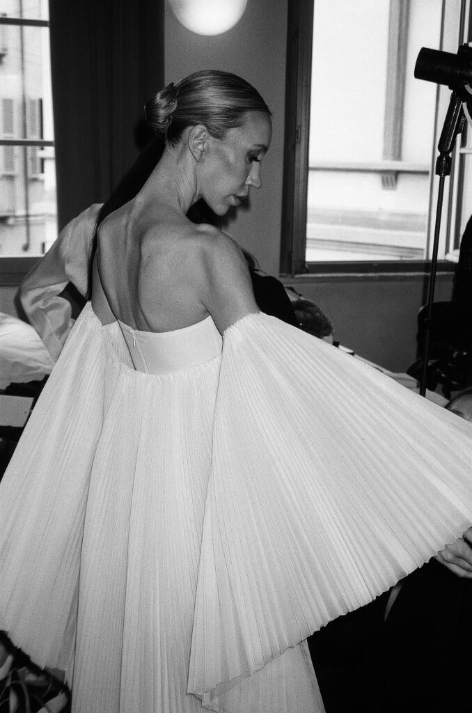 The following day she walked for designer Ira Langevin at Milan Fashion Vibes. Ira, known for her artistry, put Labonville in both a white gown and a black mini dress. Both pieces showcased why Labonville was gaining momentum. Langevin’s sculptural gowns and sharply tailored silhouettes highlighted Labonville’s ability to transition between dramatic eveningwear and modern runway looks.