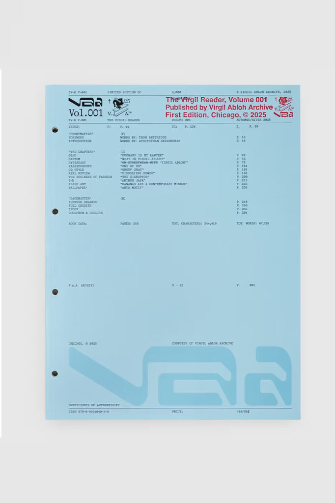 Nastavljajući duboko nasleđe kasnog vizionara u oblasti open-source kreativnosti, Virgil Abloh Archive™ (V.A.A.) je zvanično najavio svoje najnovije velike inicijative. Počevši od danas, fanovi, studenti i etablirani kreativci širom sveta mogu da obezbede svoje kopije The Virgil Reader Vol. 001 i da se prijave za potpuno novo Archive Membership, što predstavlja veliki korak ka tome da Ablohovo obimno delo postane dostupno javnosti.