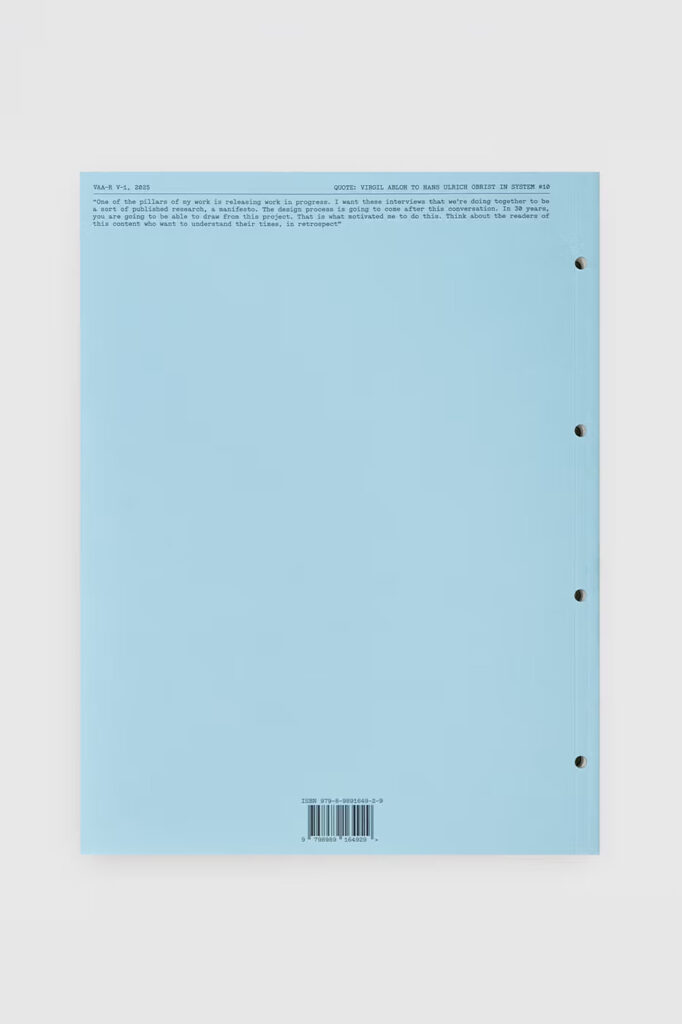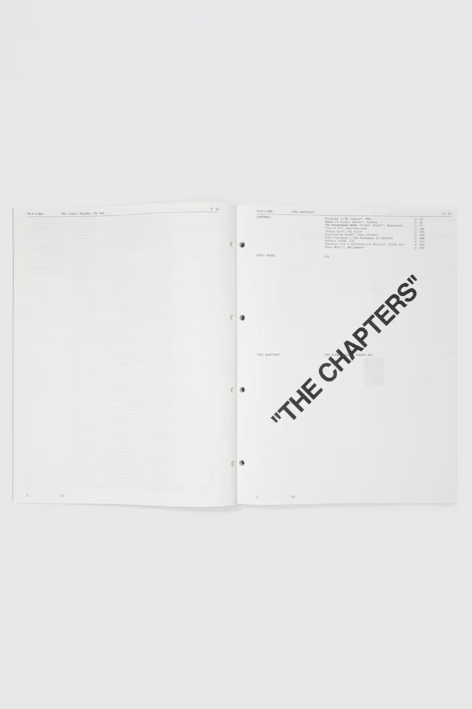 Prevodeći upravo taj etos u štampu, The Virgil Reader Vol. 001 služi kao prva publikacija Arhiva. Knjiga nudi sveobuhvatan uvid u Ablohov kreativni proces, kulturne komentare i dizajnersko razmišljanje. Sadrži predgovor urednika i-D, Thom Bettridge, a obimni tekstovi objedinjuju ključne intervjue i članke iz prestižnih publikacija poput 032c, The Business of Fashion i System Magazine—svi verno reprintovani u svojim originalnim izgledima i dizajnu.